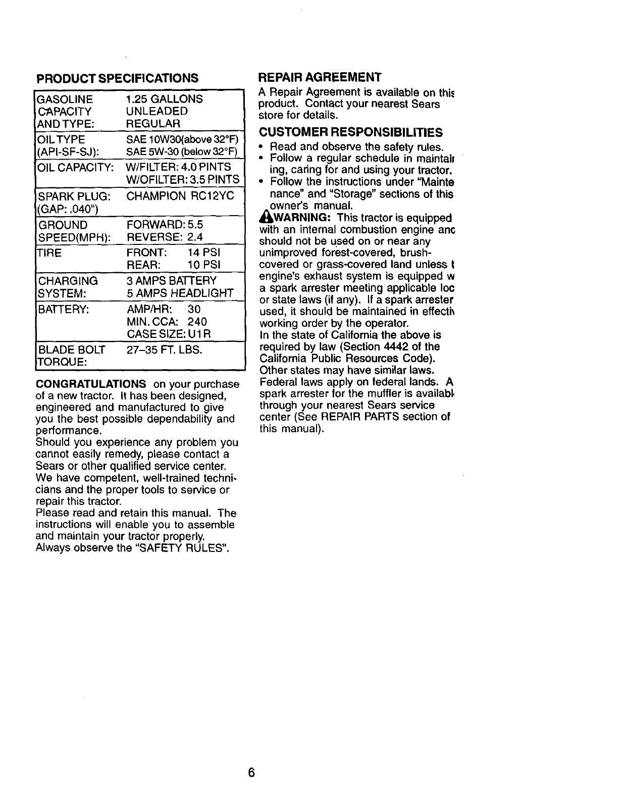 serviceis availablefree of chargeby returningyour Craftsmanridingequipmentto