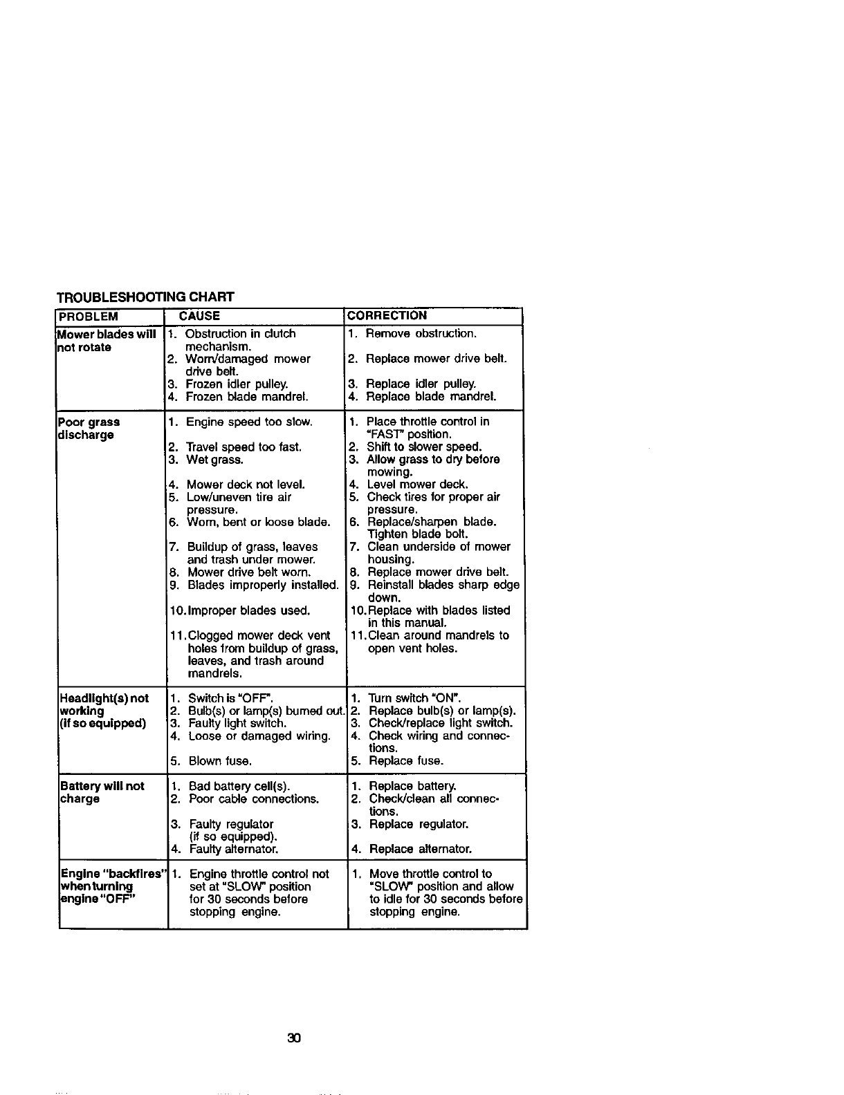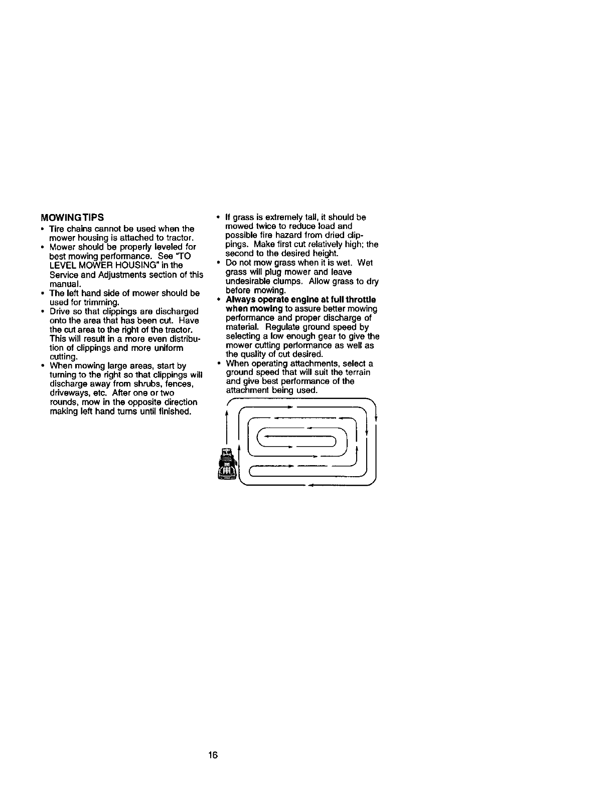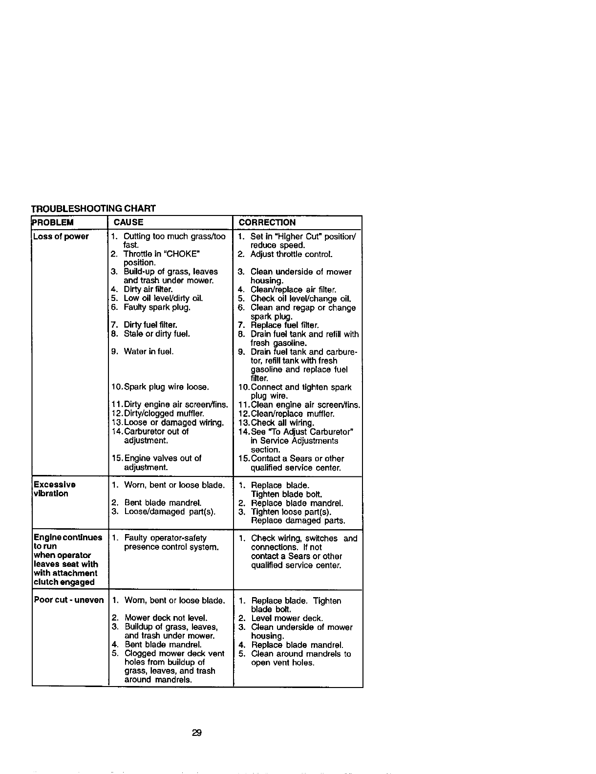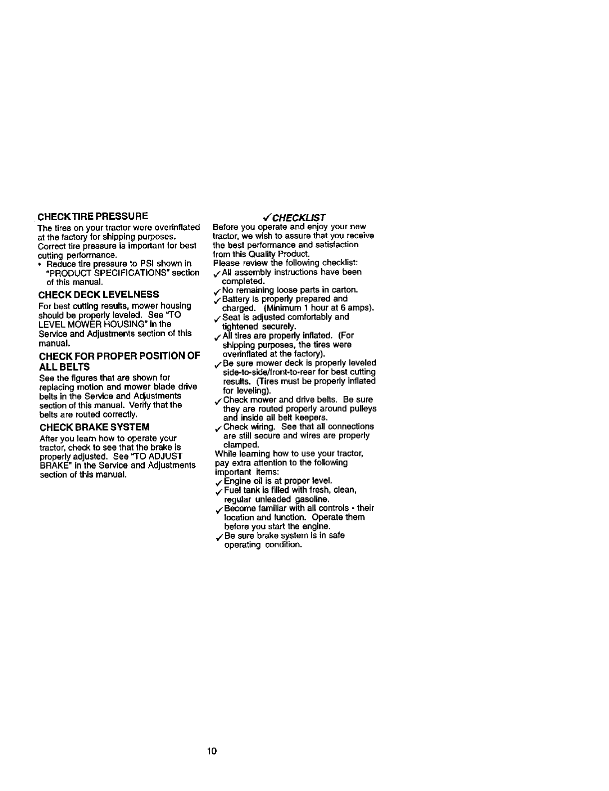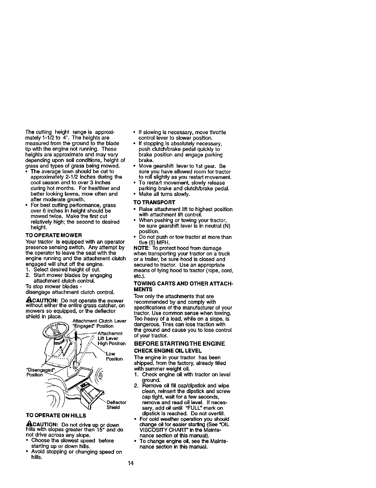 proper grade and amount of engine oil, failure to keep the deck clear of flammable