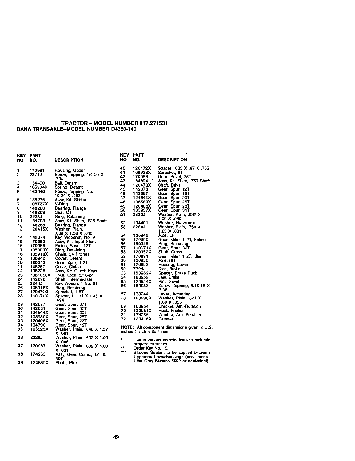 NOTE: All componentdimensions given in U,S.