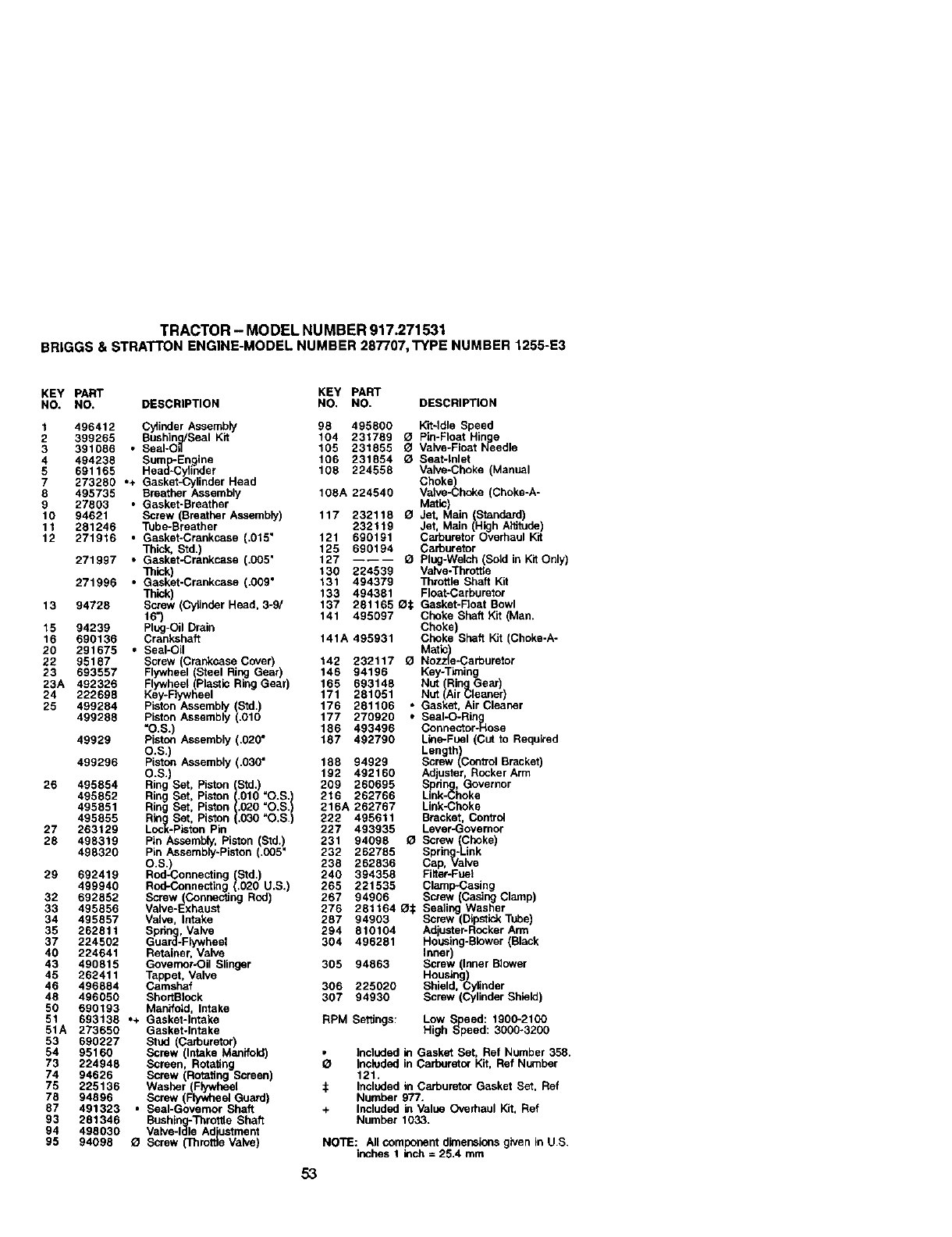 95 94098 _ Screw (Throttle Valve) NOTE: All component dimensions given in U.S.