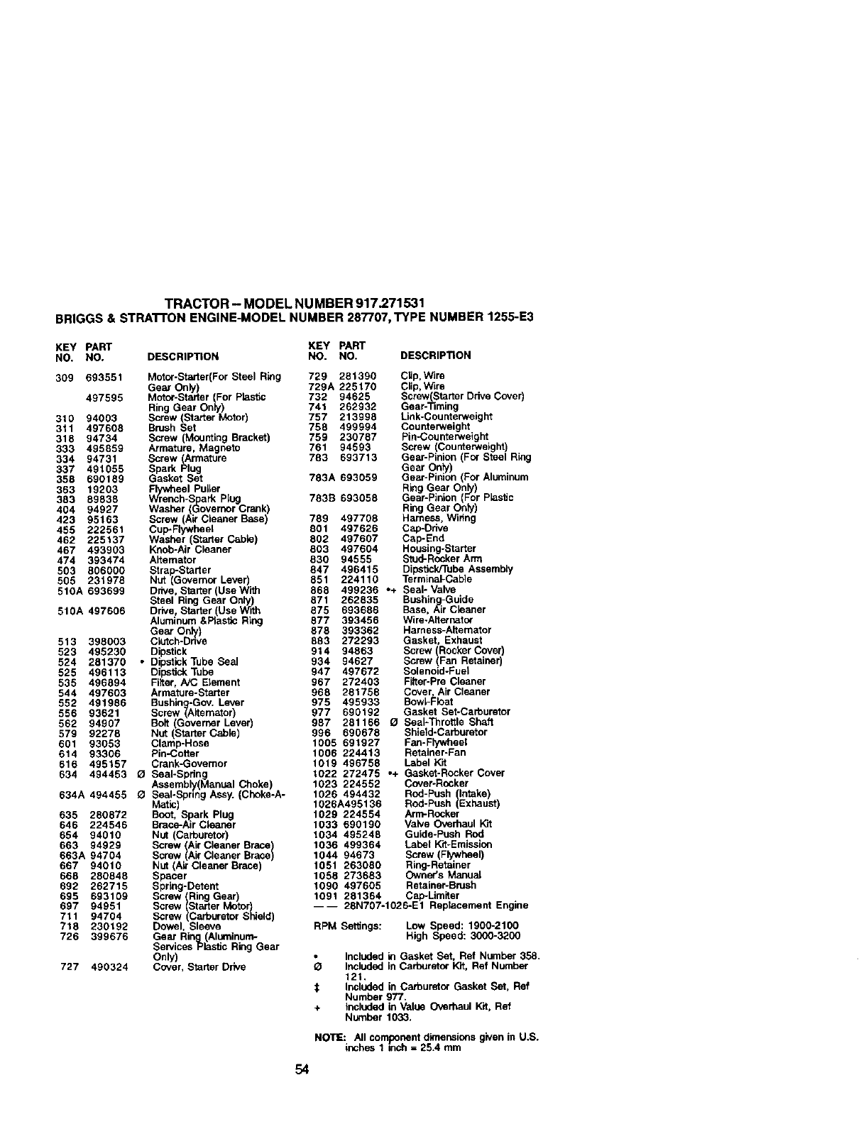 544 497603 Armature-Starter 968 281758 Cover, Air Cleaner