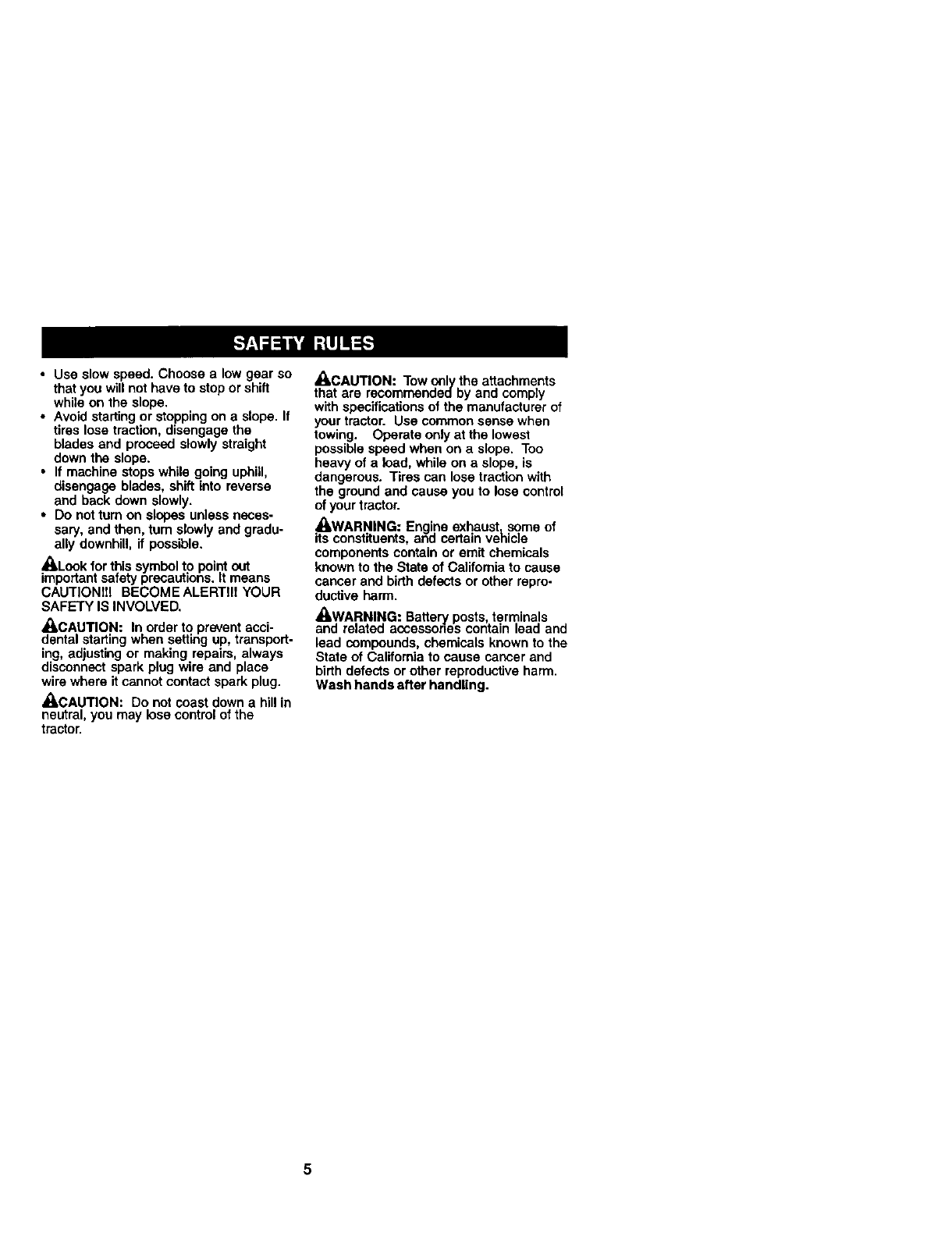 /_ Operate your Tractor up and down the face of slopes (not I