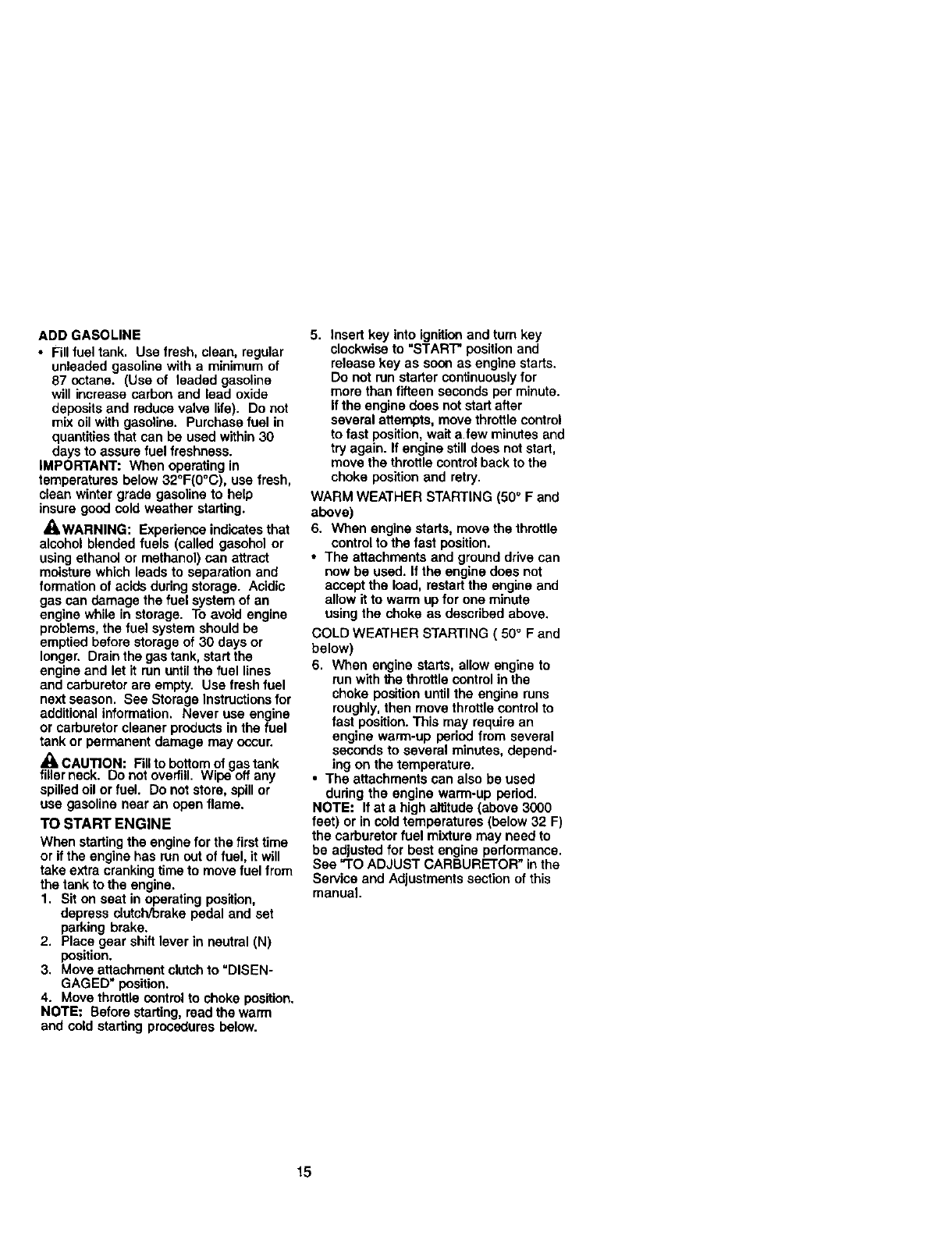 nated or oxidized (stale). In general, fuel should be used within thirty (30) days of its
