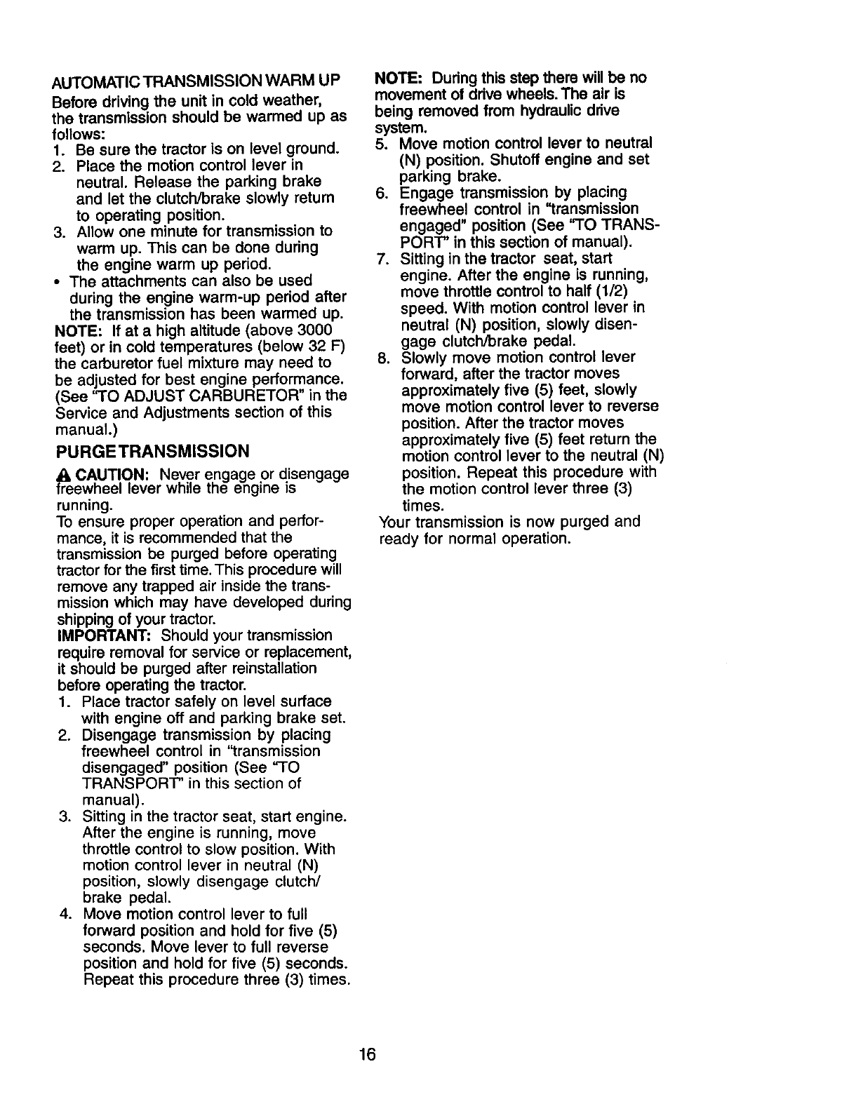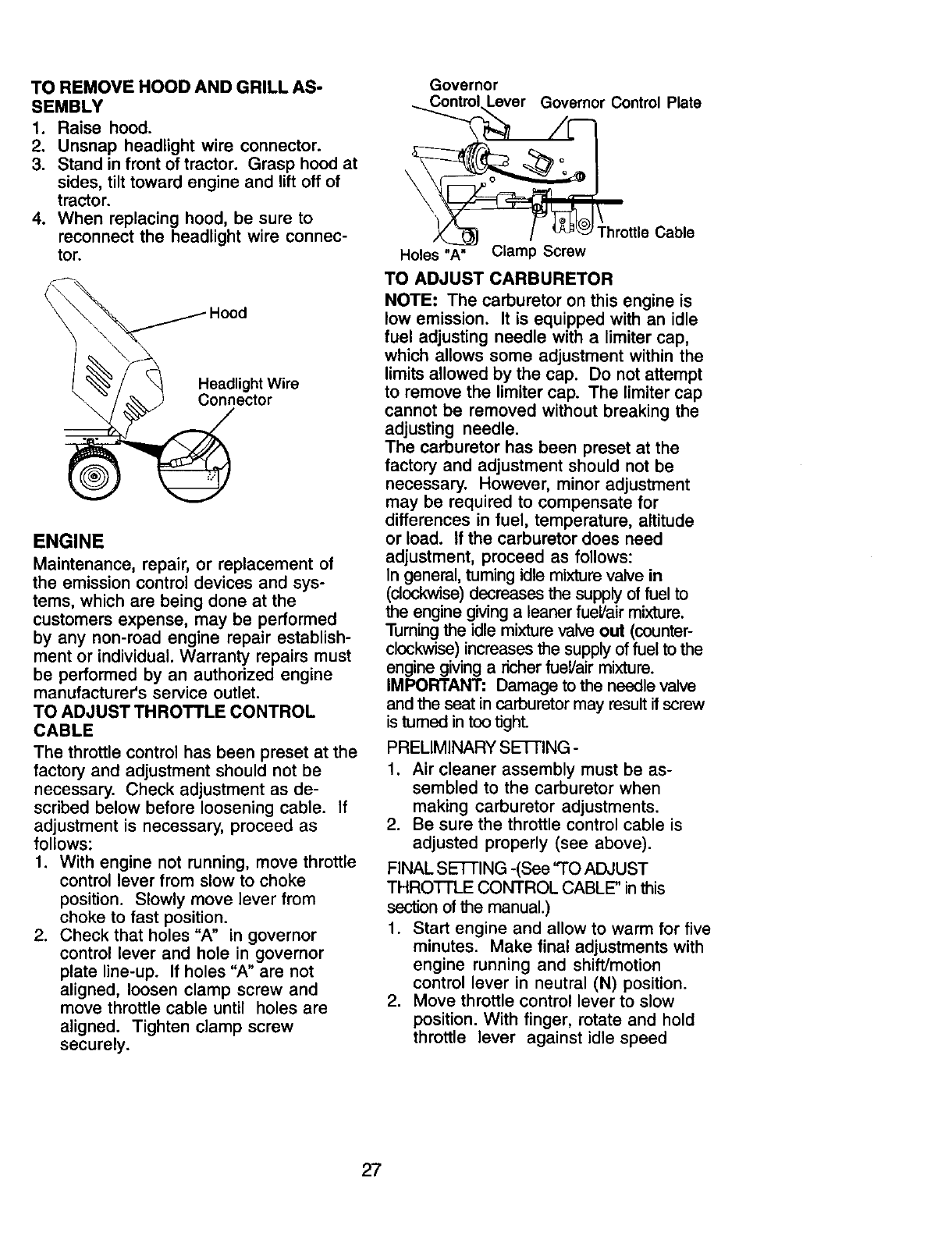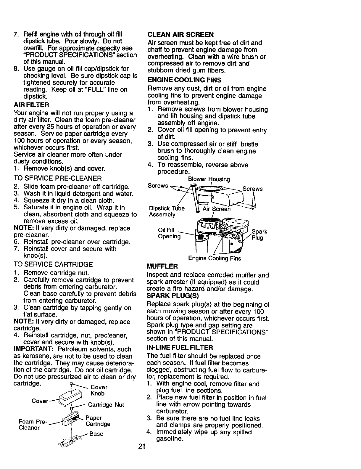 maintained, lubricated and tuned up according to the instructions in the owner's