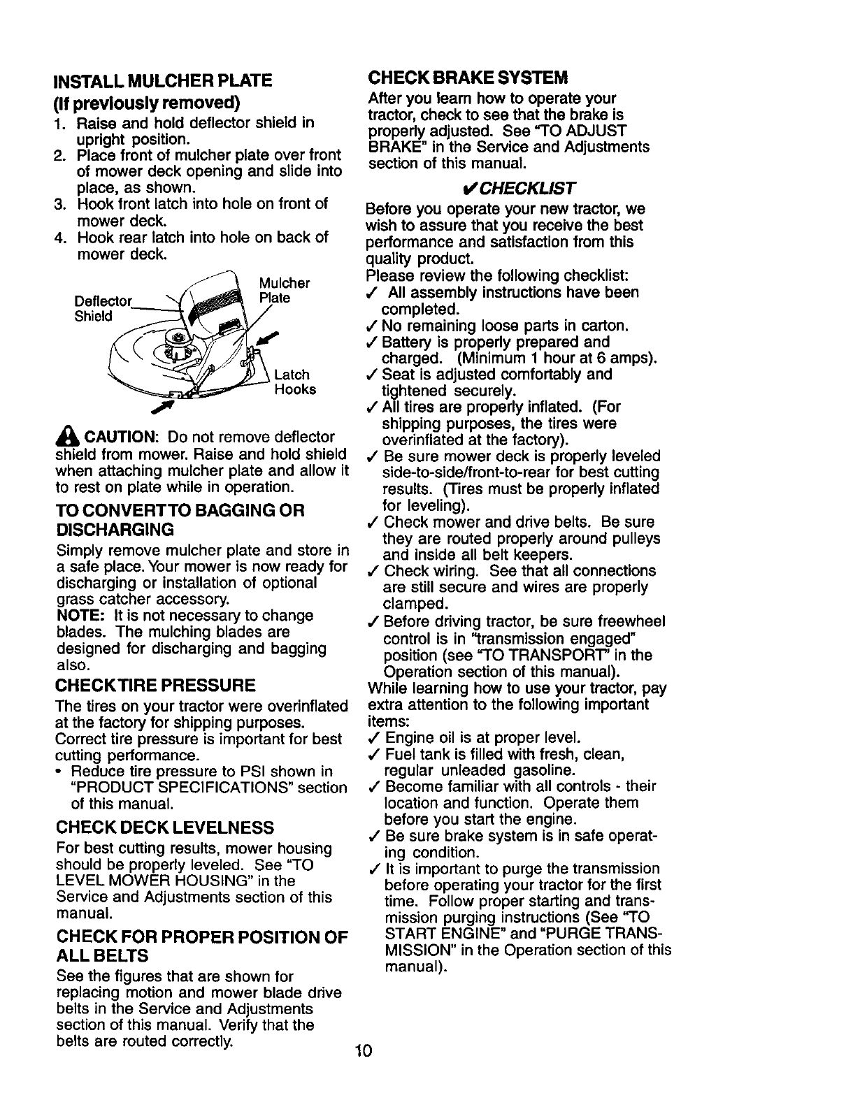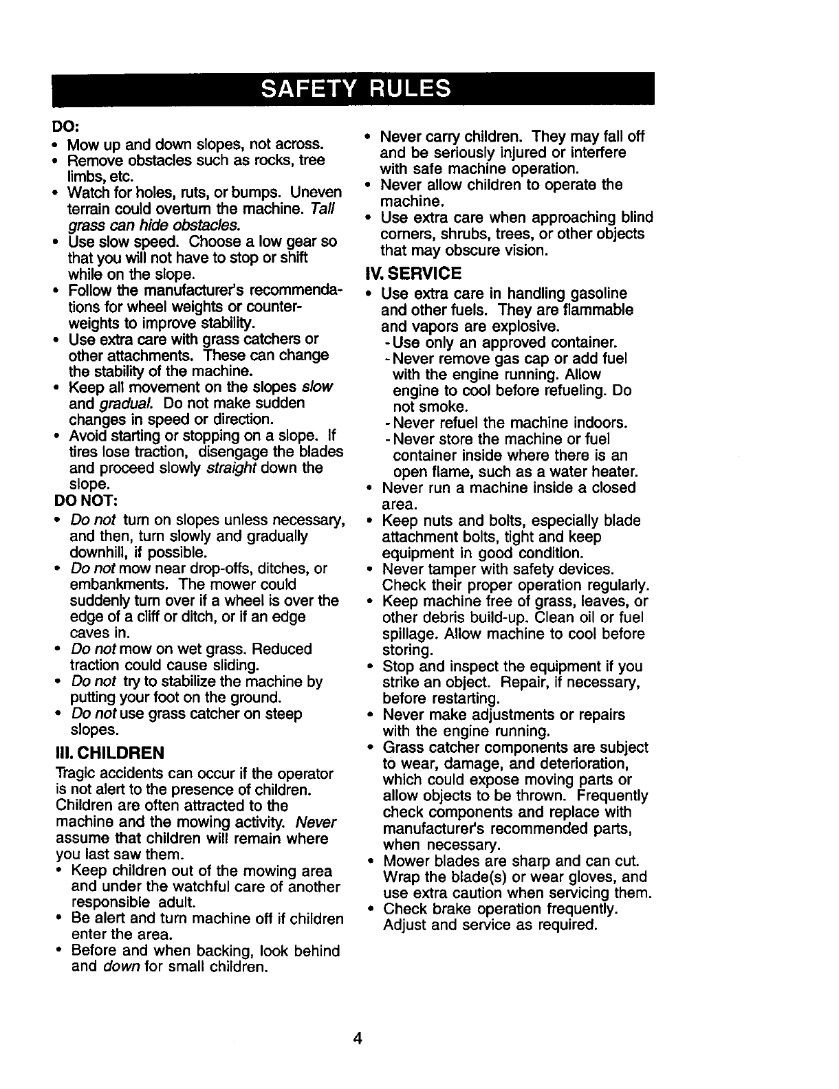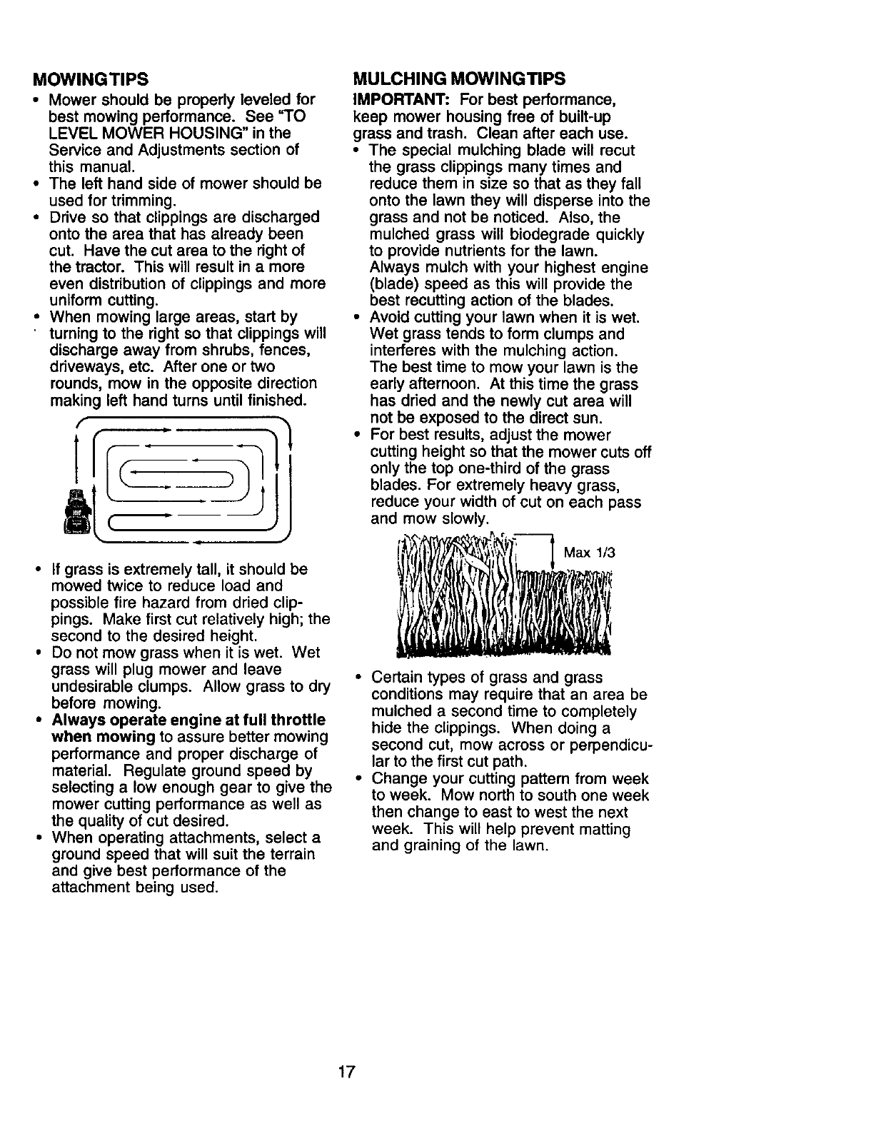 proper grade and amount of engine oil, failure to keep the deck clear of flammable