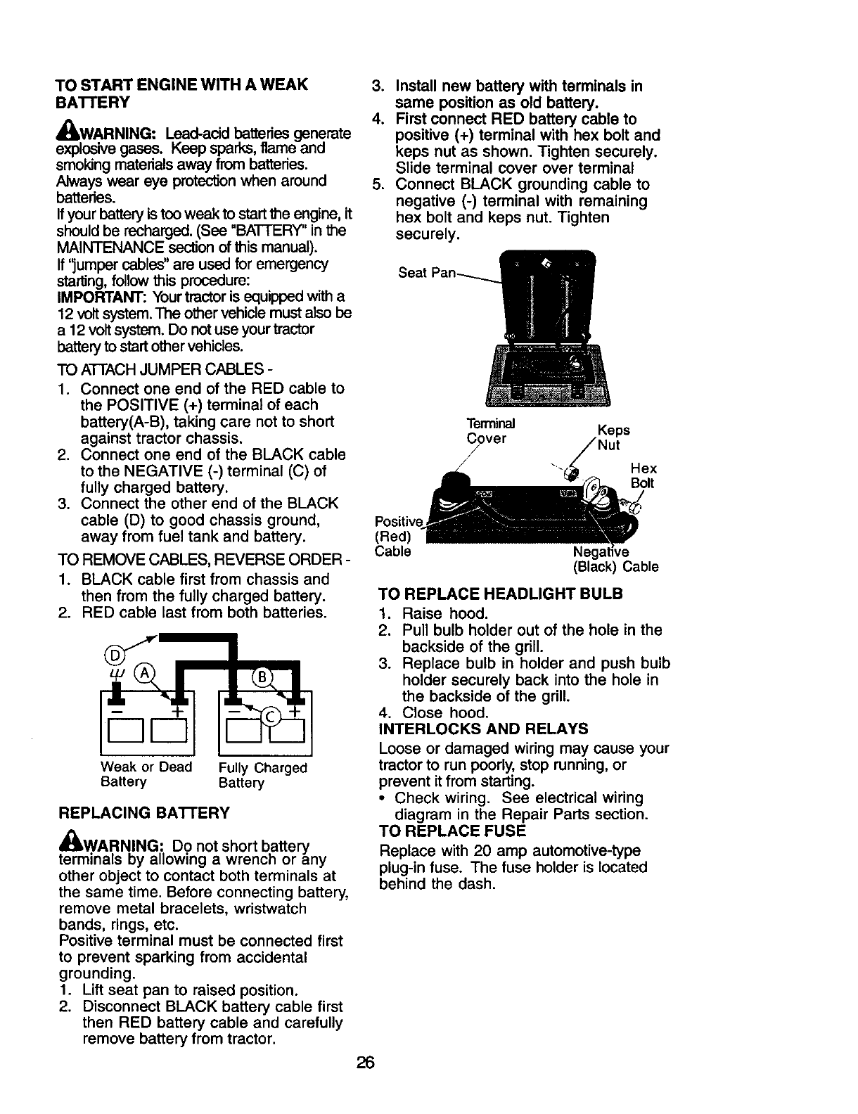 battery will not hold a charge, Sears will replace the battery at no charge. Warranty