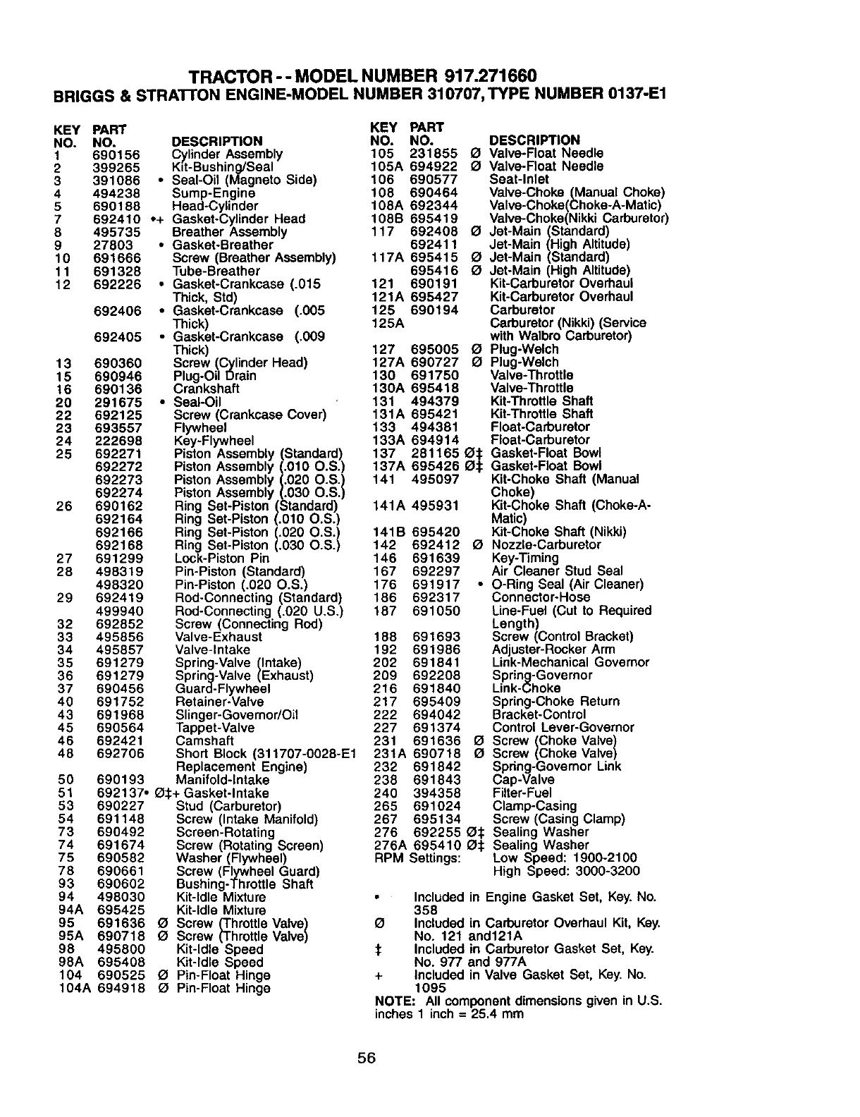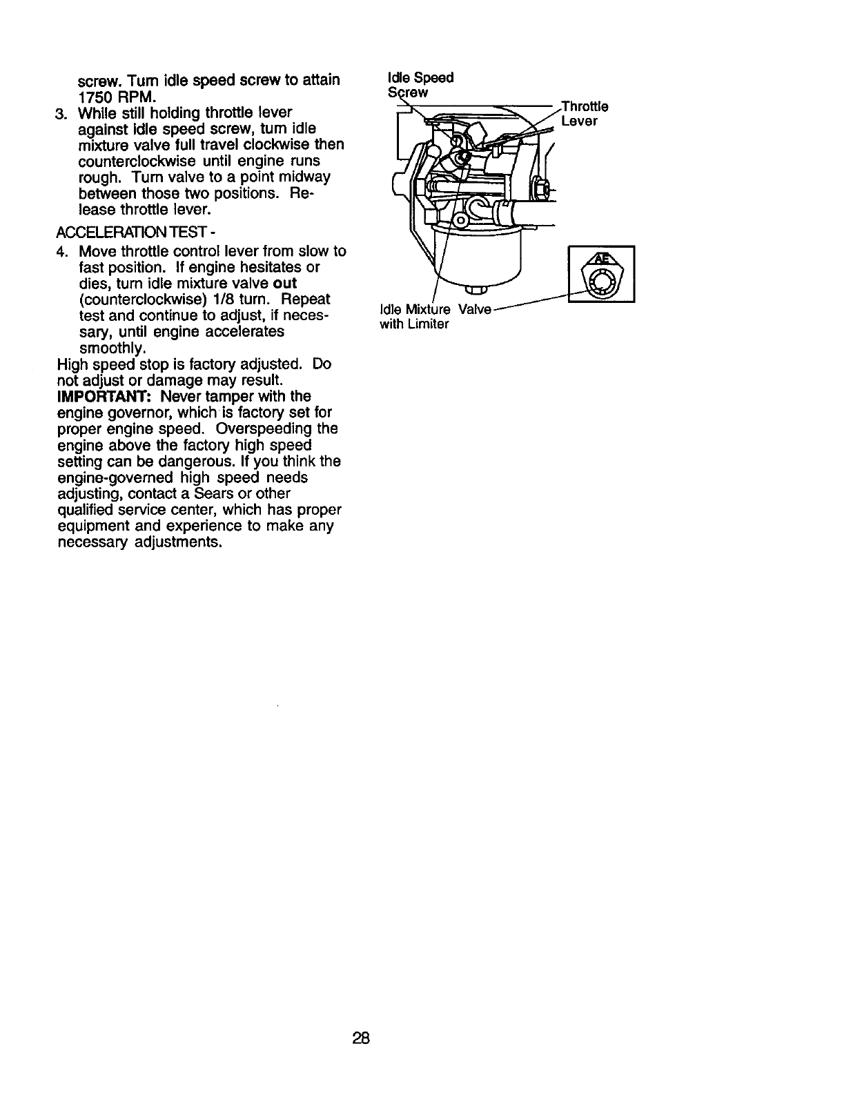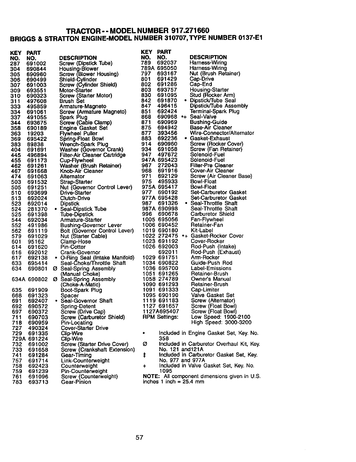 711 690703 Screw (Carburetor Shield) RPM Settings: Low Speed: 1900-2100