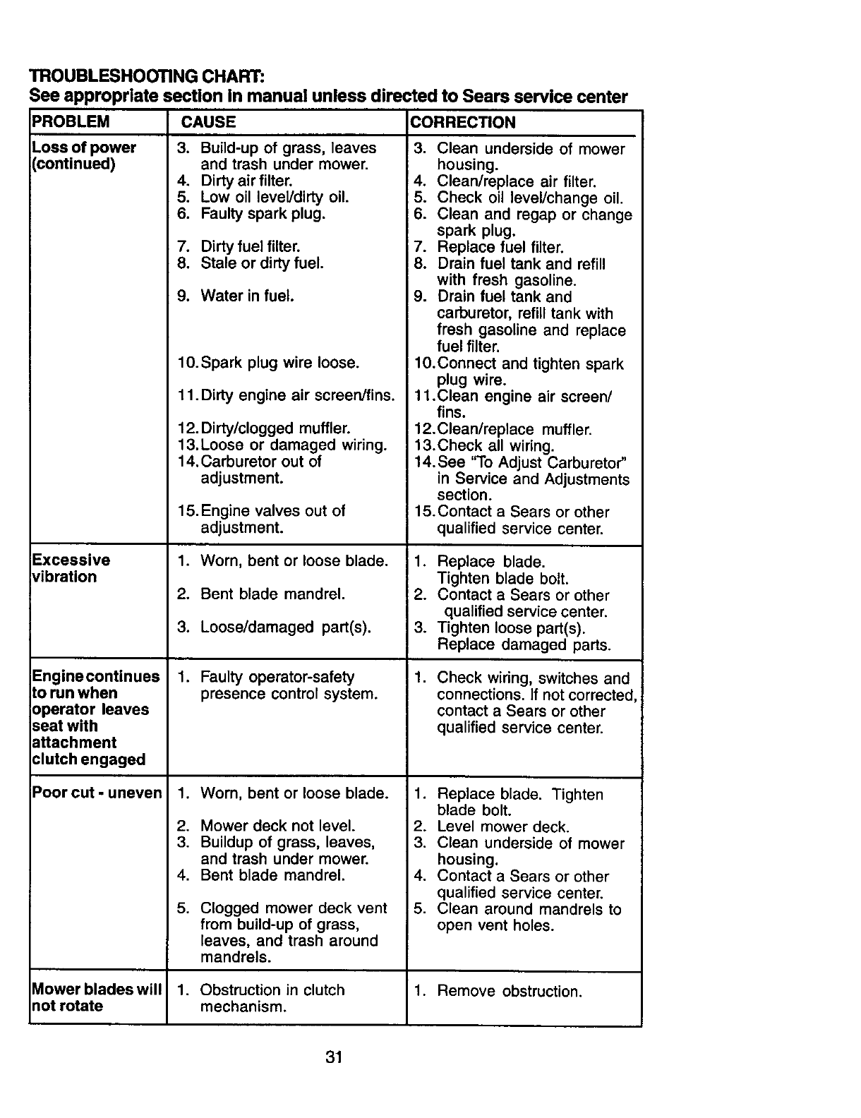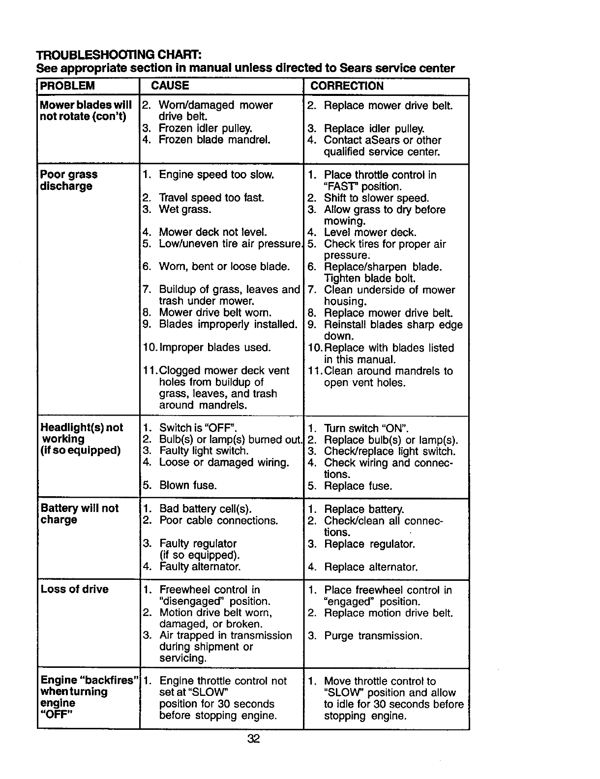 Sears Service ...................... Back Cover