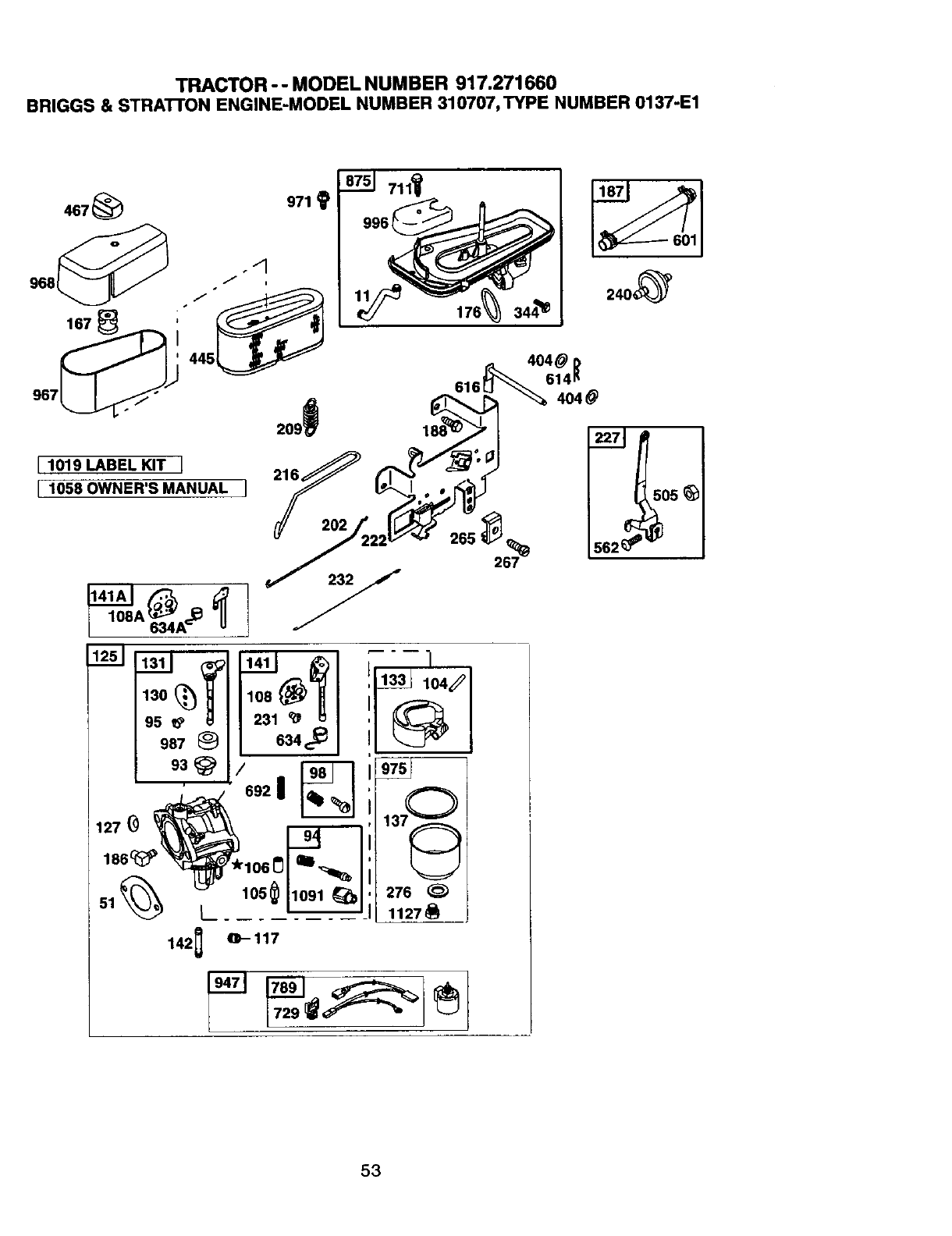 467 691668 Knob-Air Cleaner 968 691916 Cover-AirCleaner