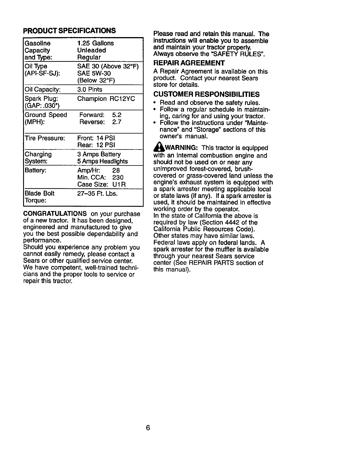 Craftsman 917271660 User Manual LAWN TRACTOR Manuals And Guides L0112054