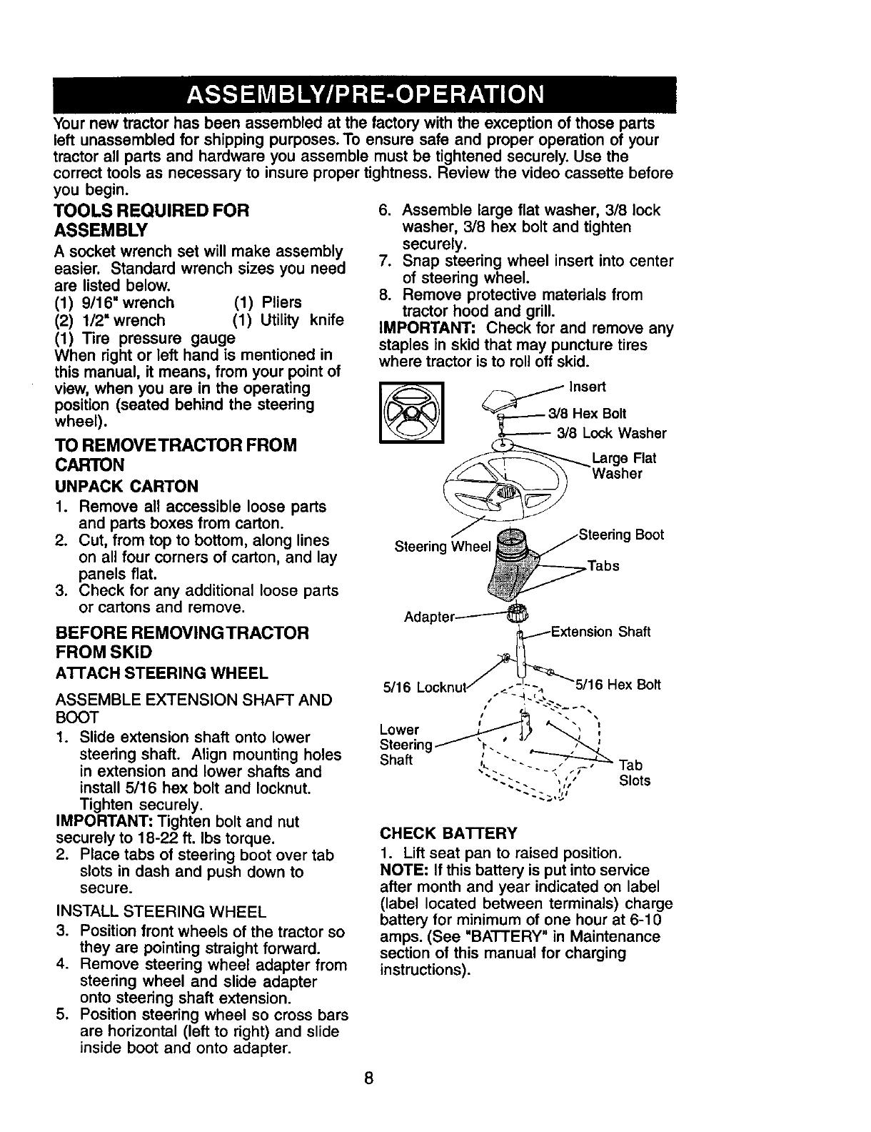 AssemblyPre-Operation ....................... 8