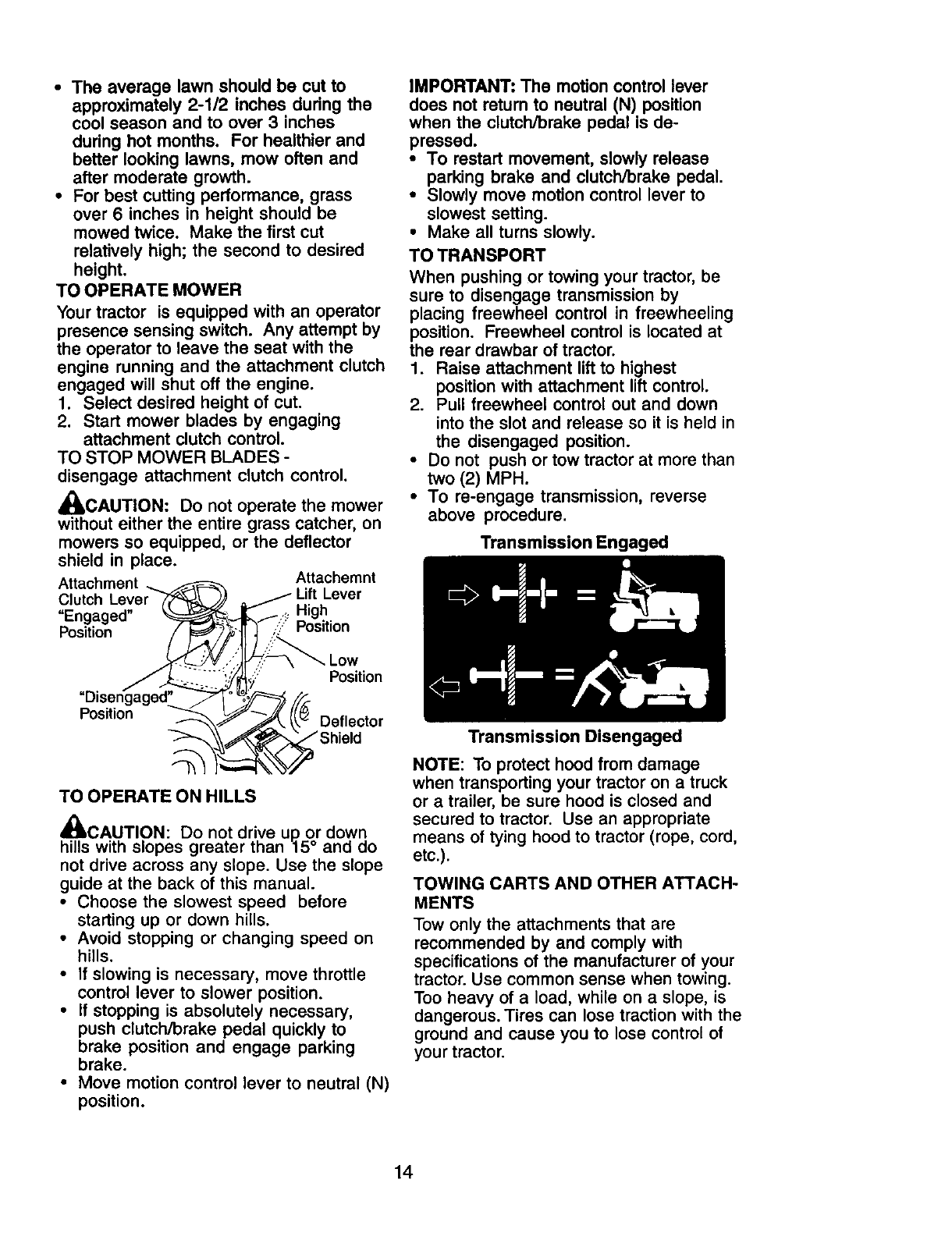 CAUTION: Tow only the attachments