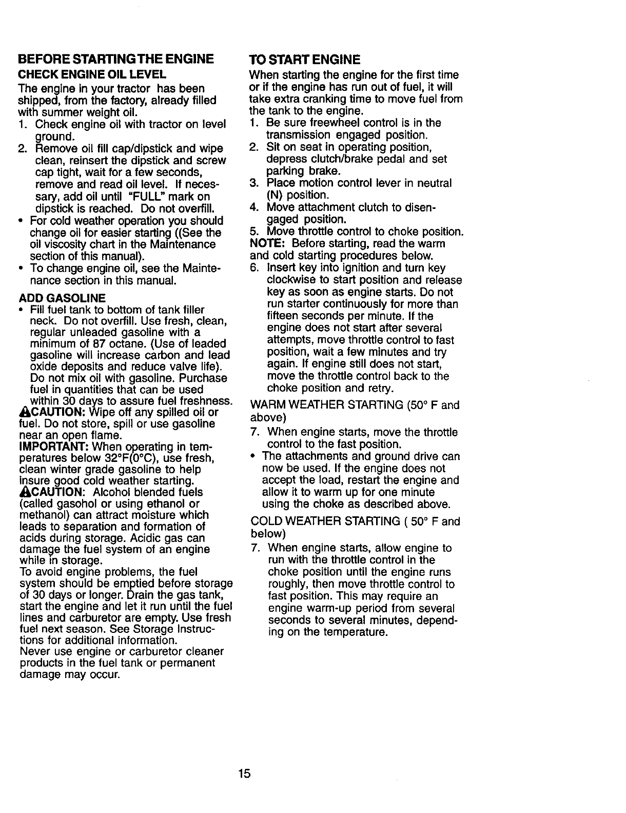 nated or oxidized (stale). In general, fuel should be used within thirty (30) days of its