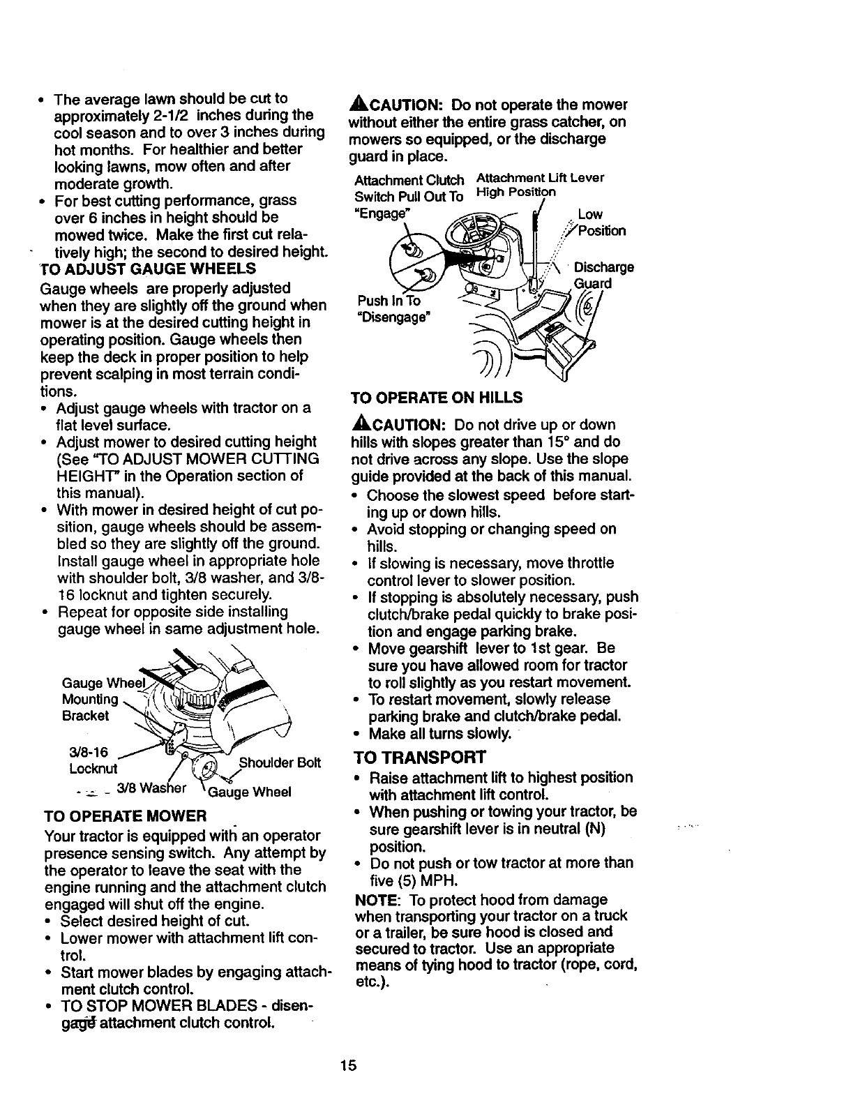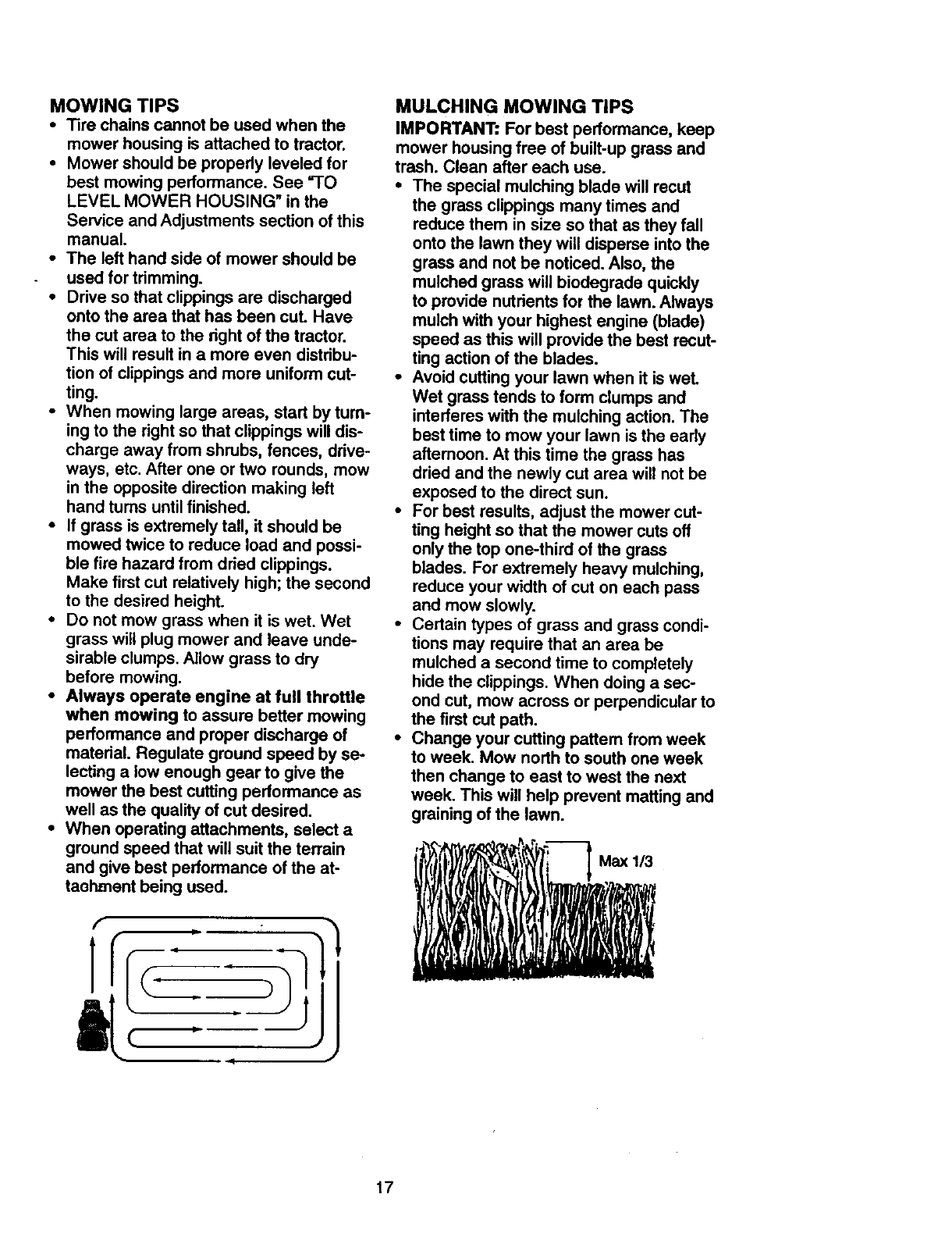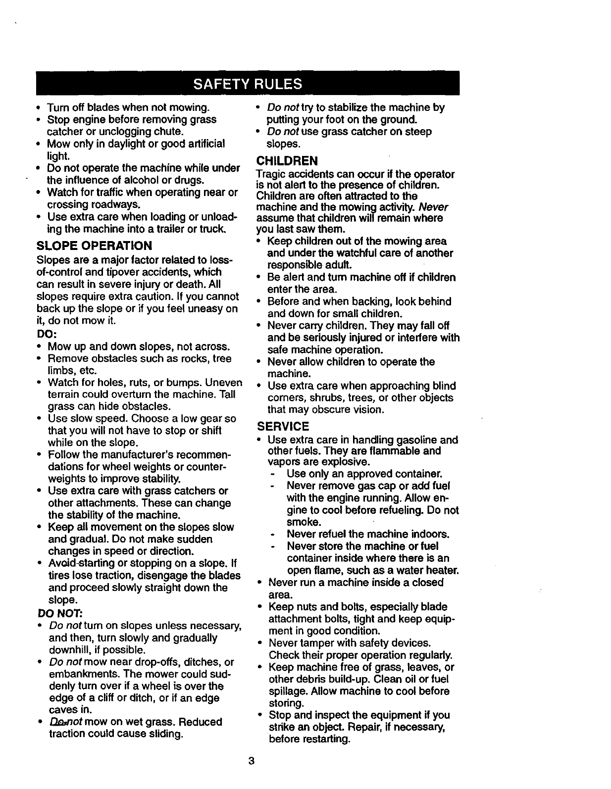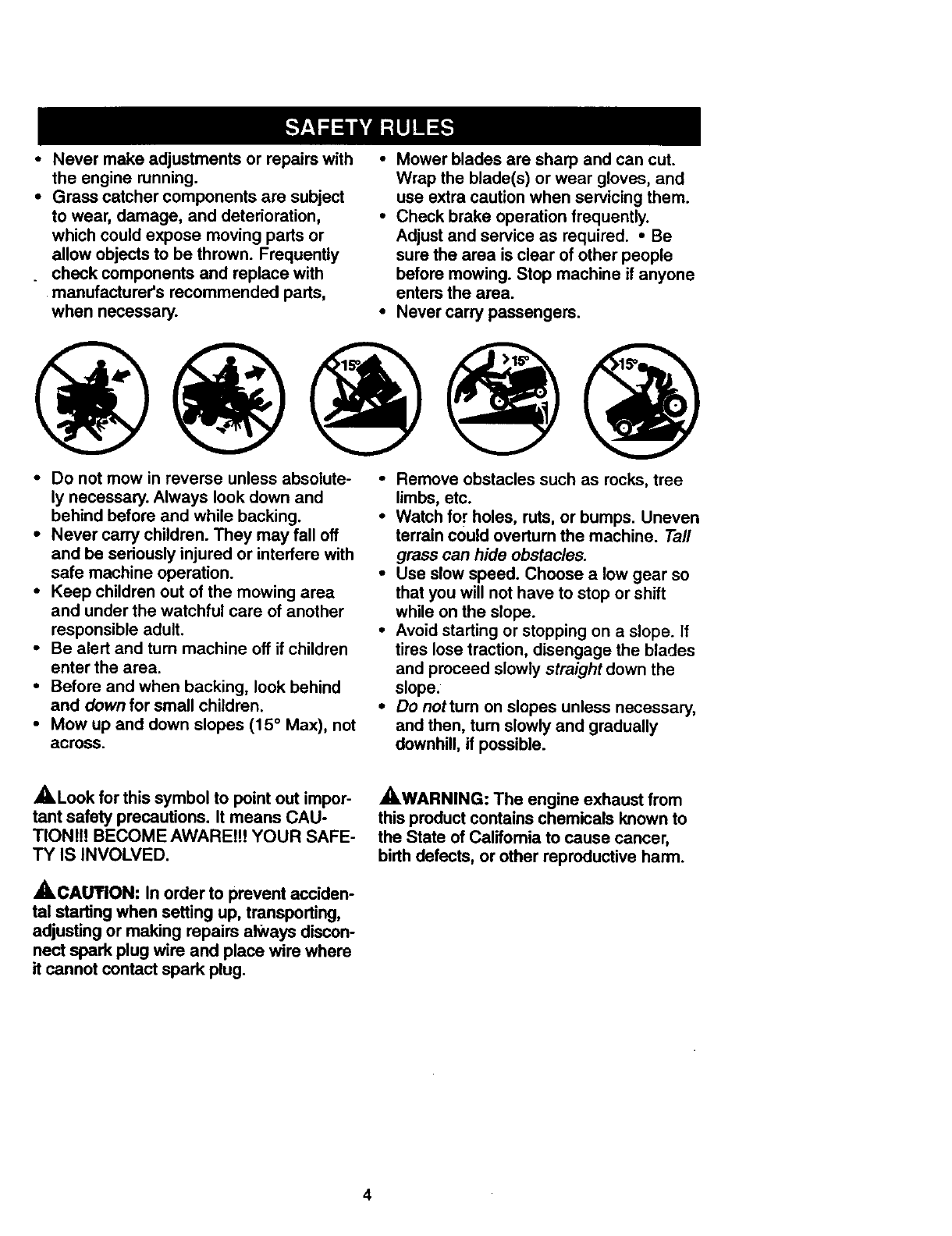 •Do not mow in reverse unless absolute-