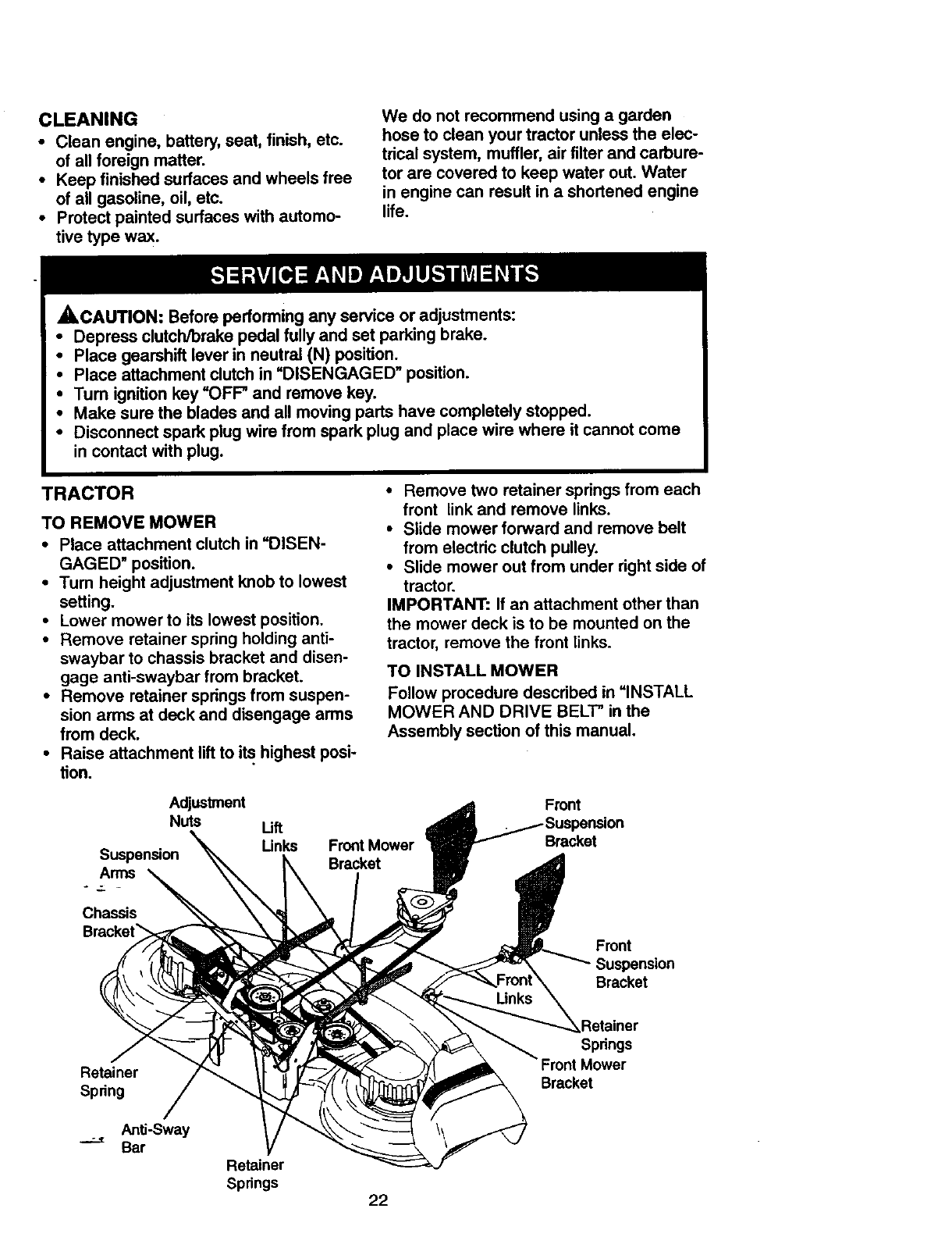 Service and Adjustments ...................... 22