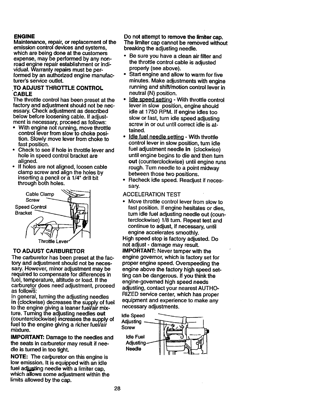 tained, lubricated and tuned up according to the instructions in the owner's manual,
