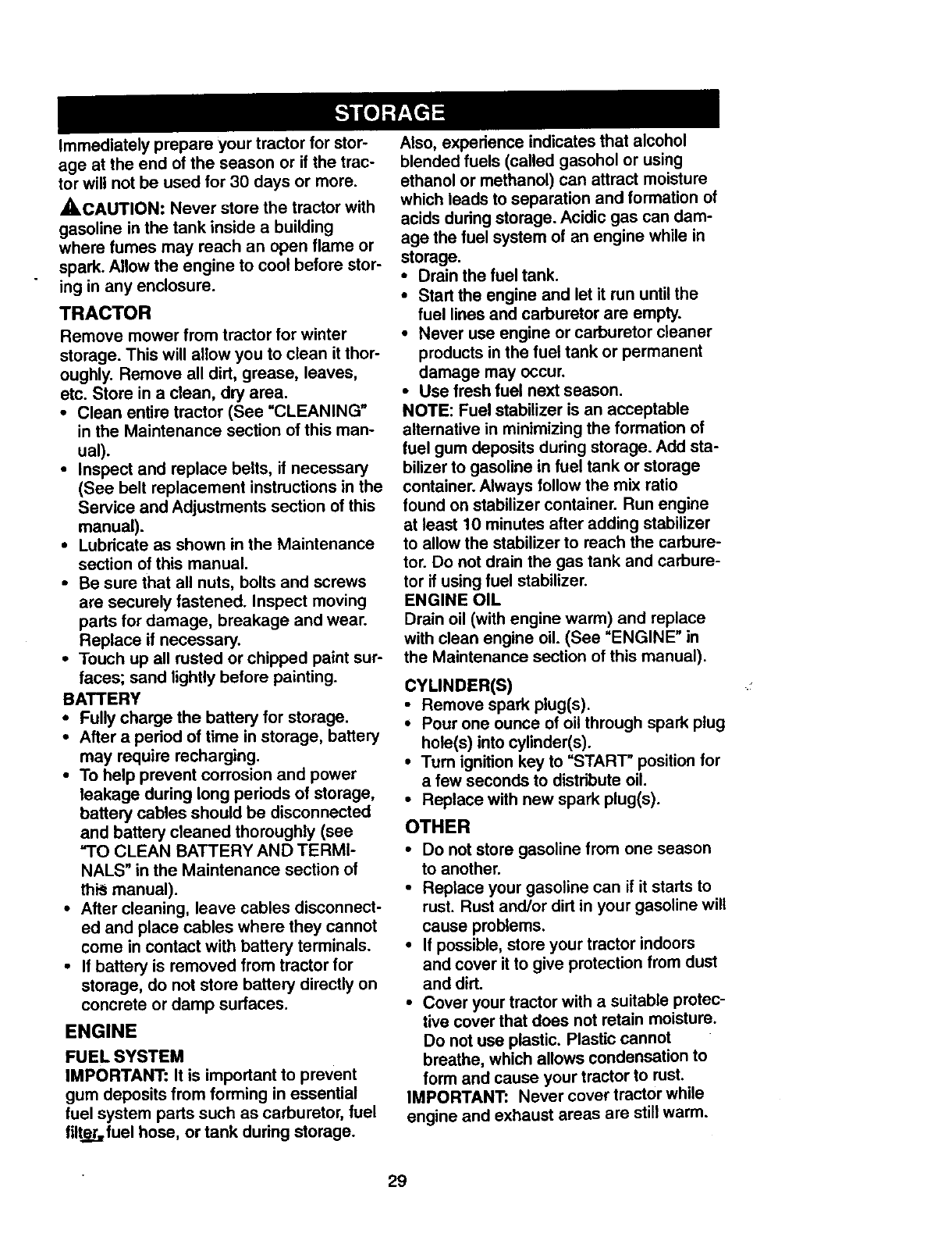 Storage ................................................. 29