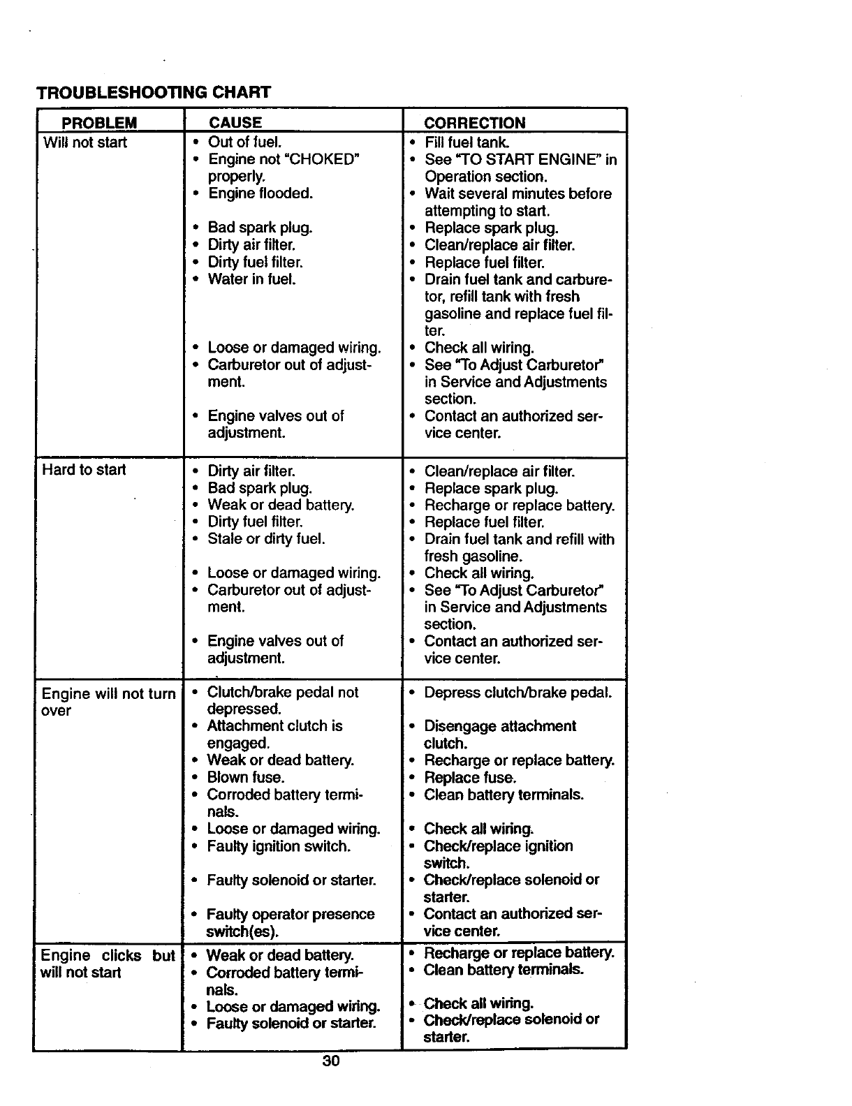 service on your Craftsman riding equipment is available at no charge for 30 days from