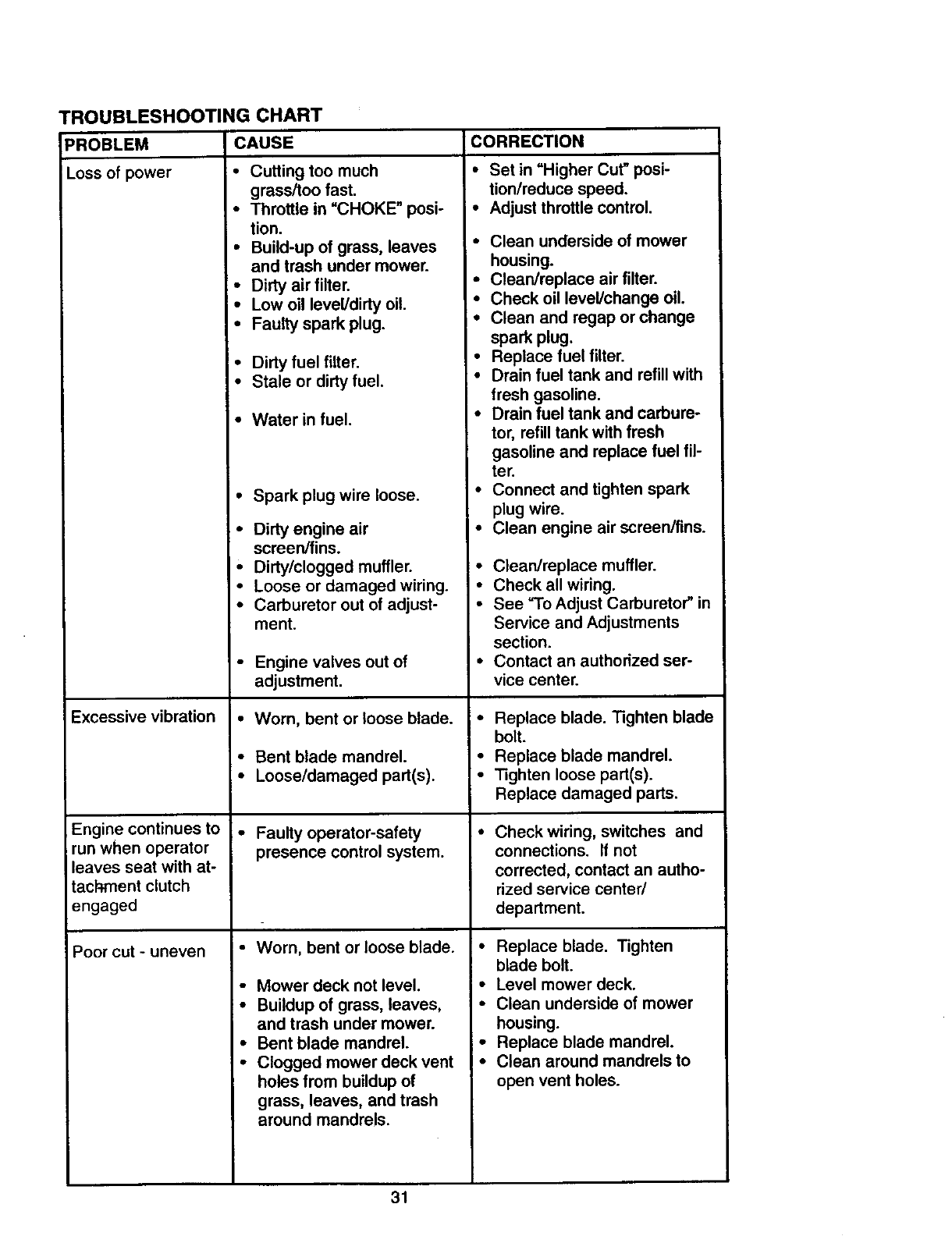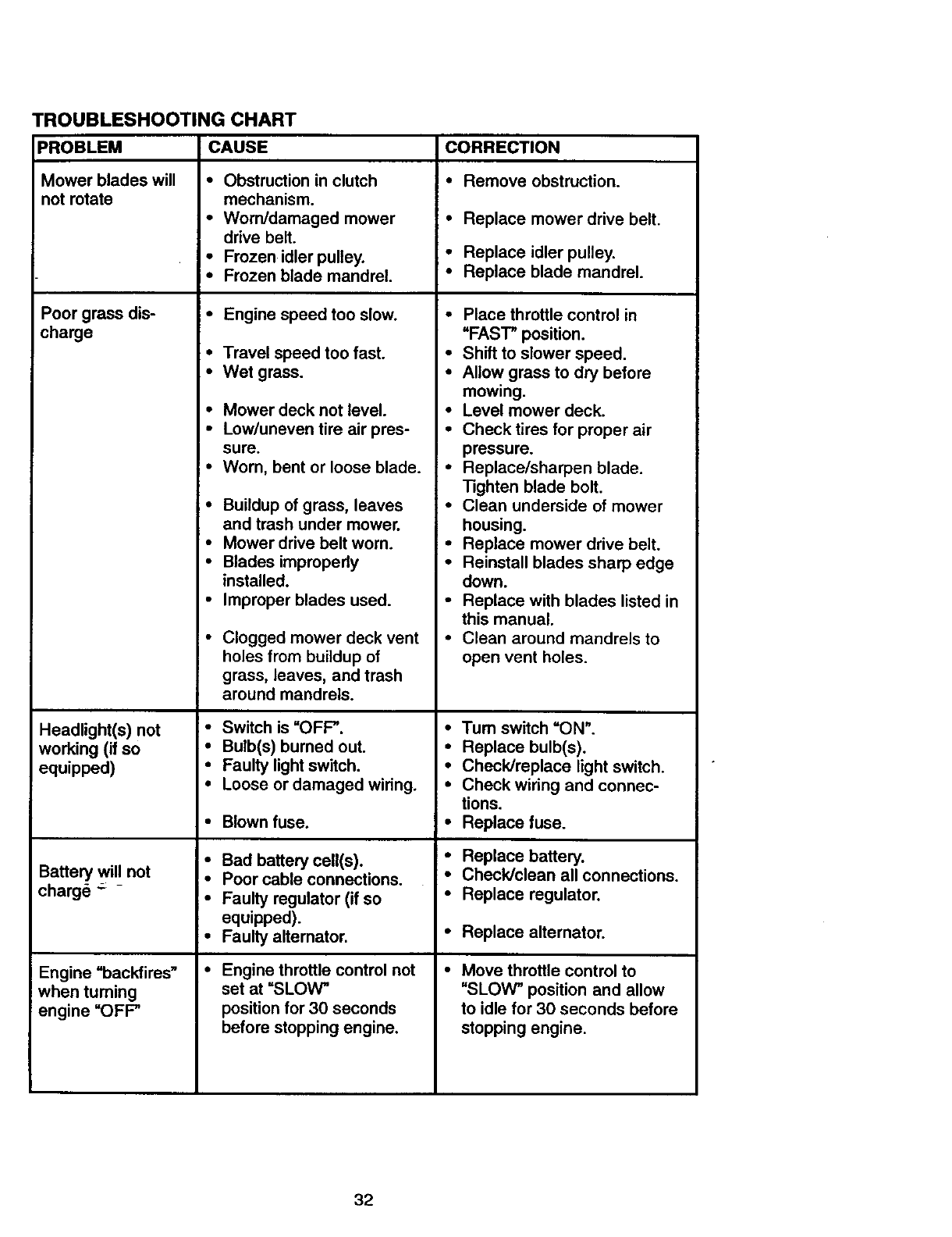 •Repairs necessary because of operator abuse, negligence, improper storage or acci-