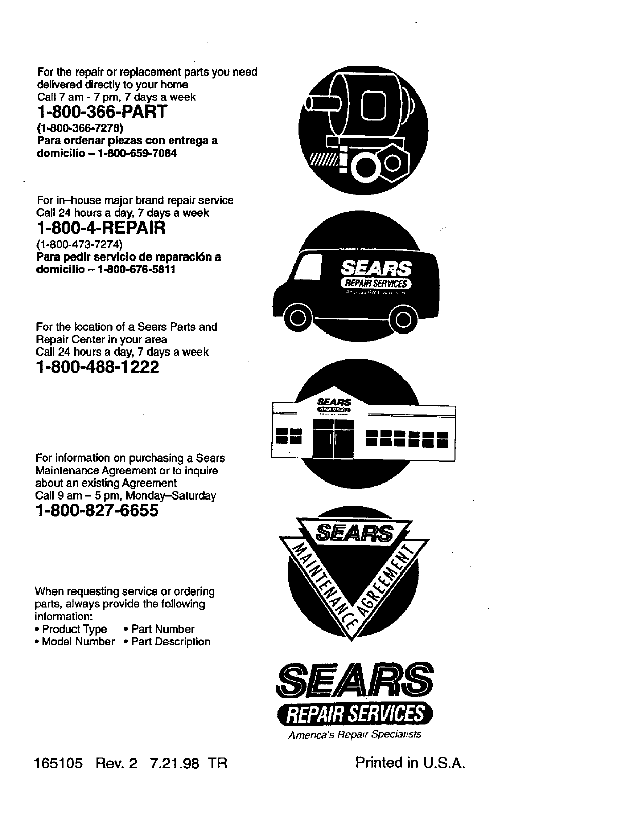 165105 Rev. 27.21.98 TR Printed in U.S.A.