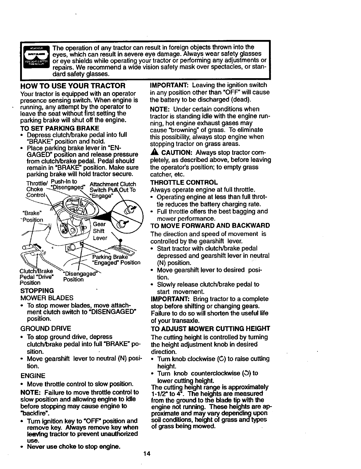 tended. Always turn off blades, set park-