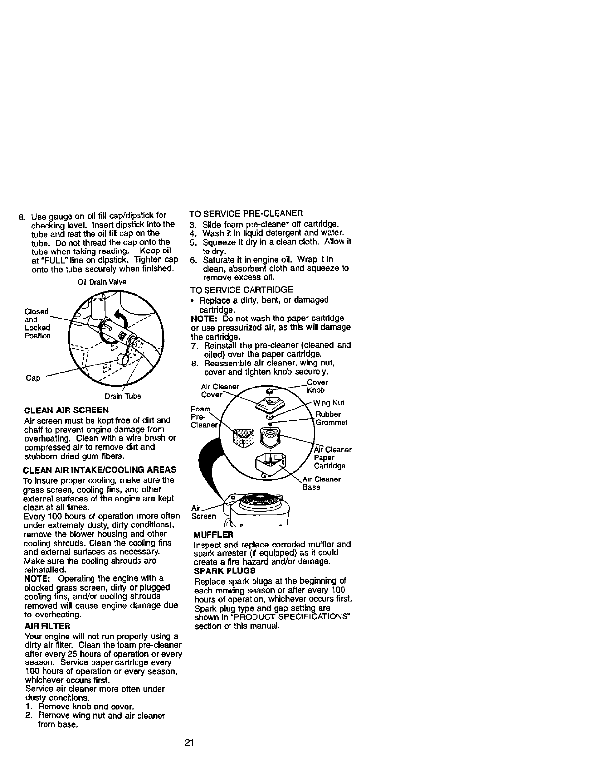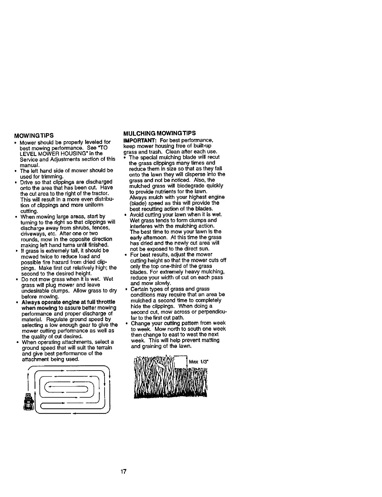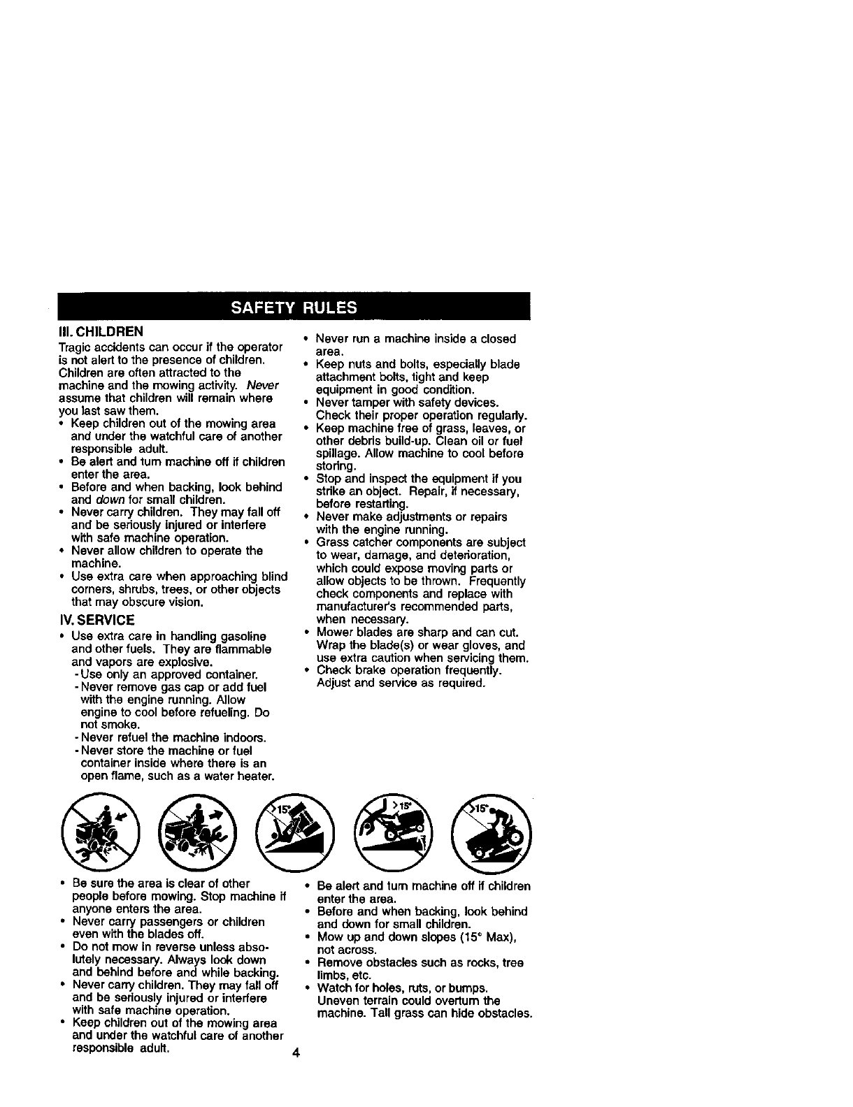 proper grade and amount of engine oil,failure to keep the deck clear of flammable