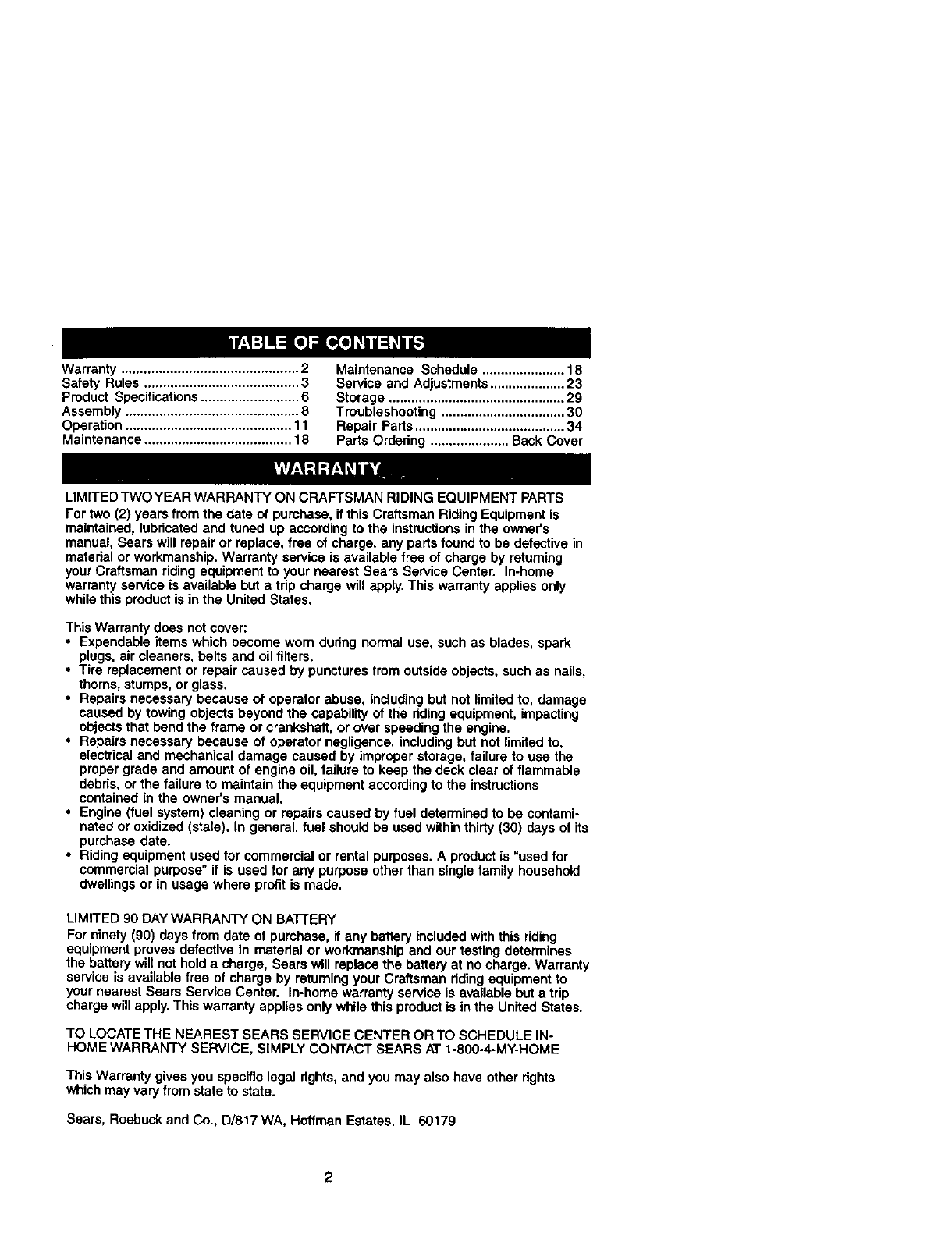 LIMITED TVMOYEAR WARRANTY ON CRAFTSMAN RIDING EQUIPMENT PARTS