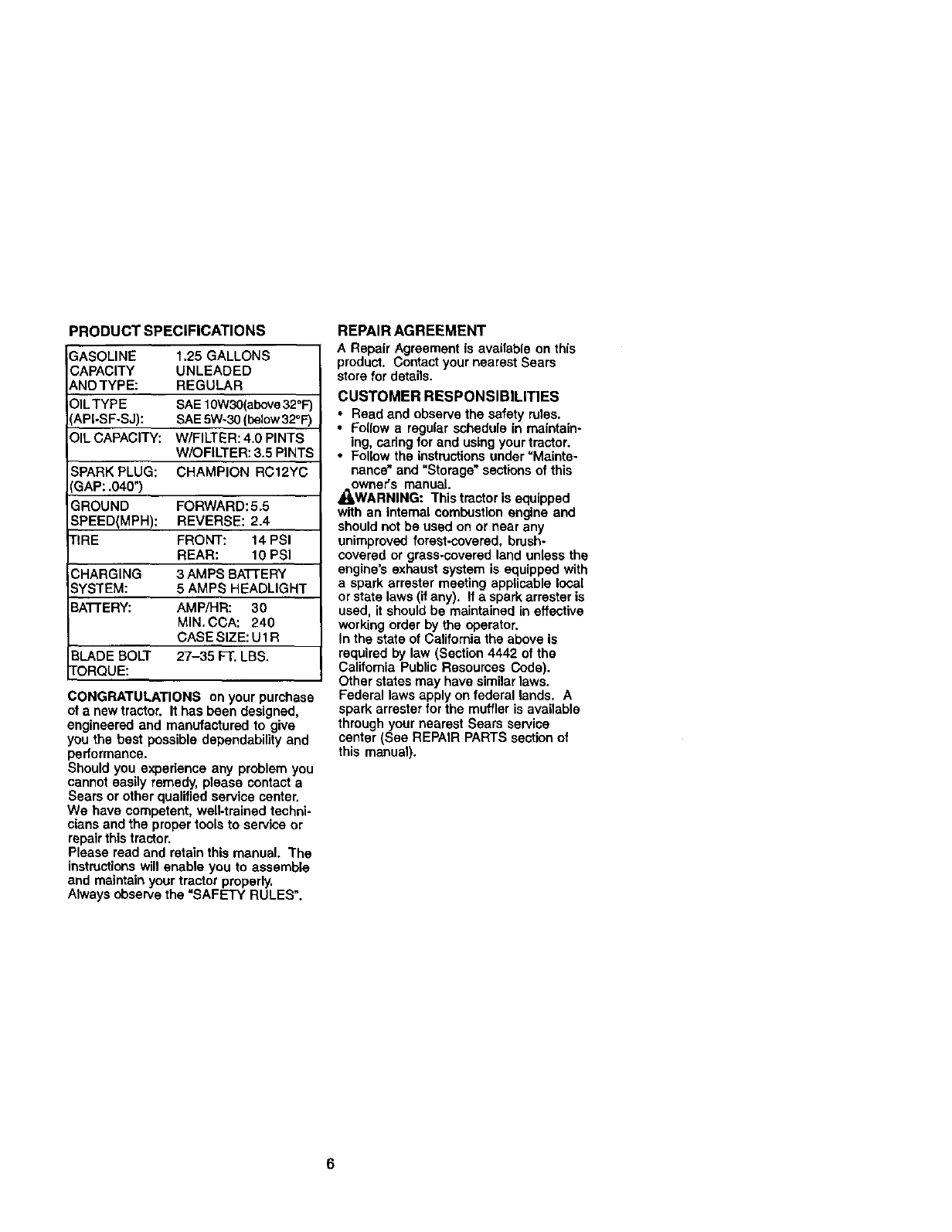 Craftsman 917272066 User Manual LAWN TRACTOR Manuals And Guides L0104096