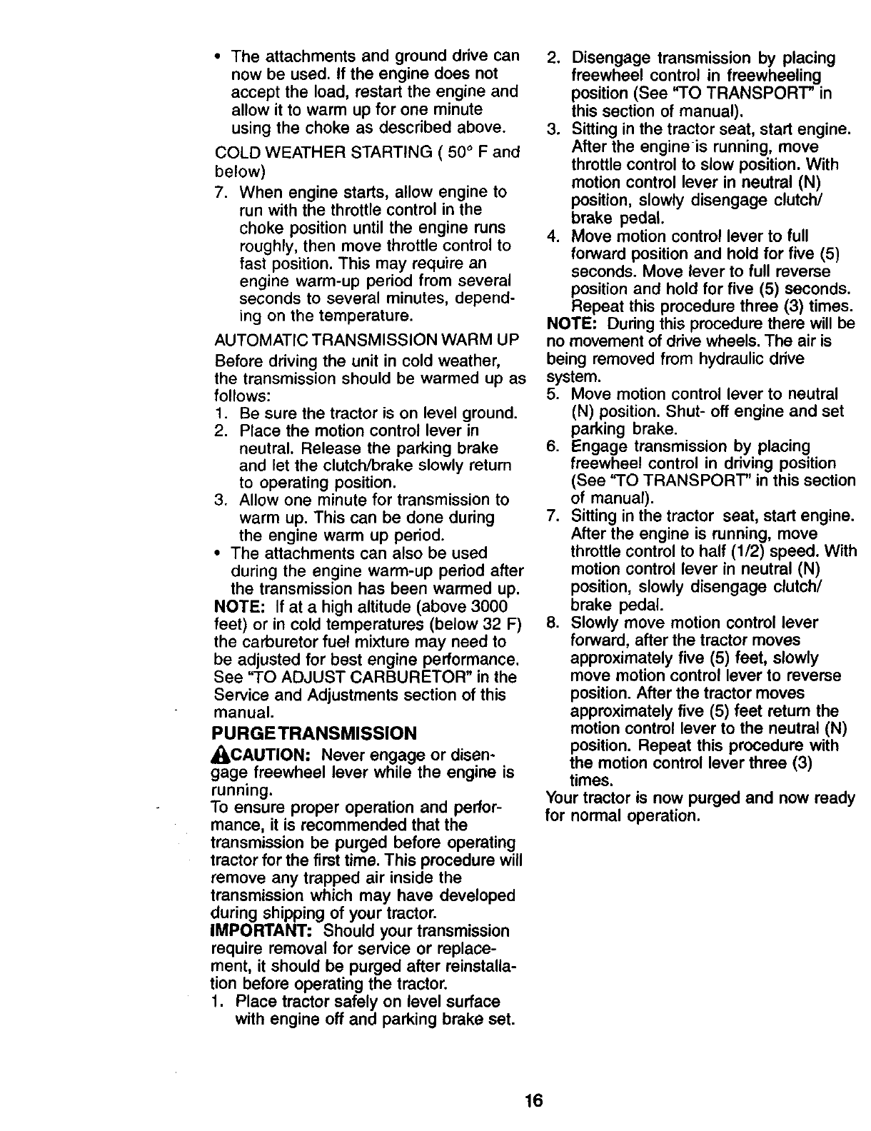 manntained, lubricated and tuned up according to the instructions in the owner's