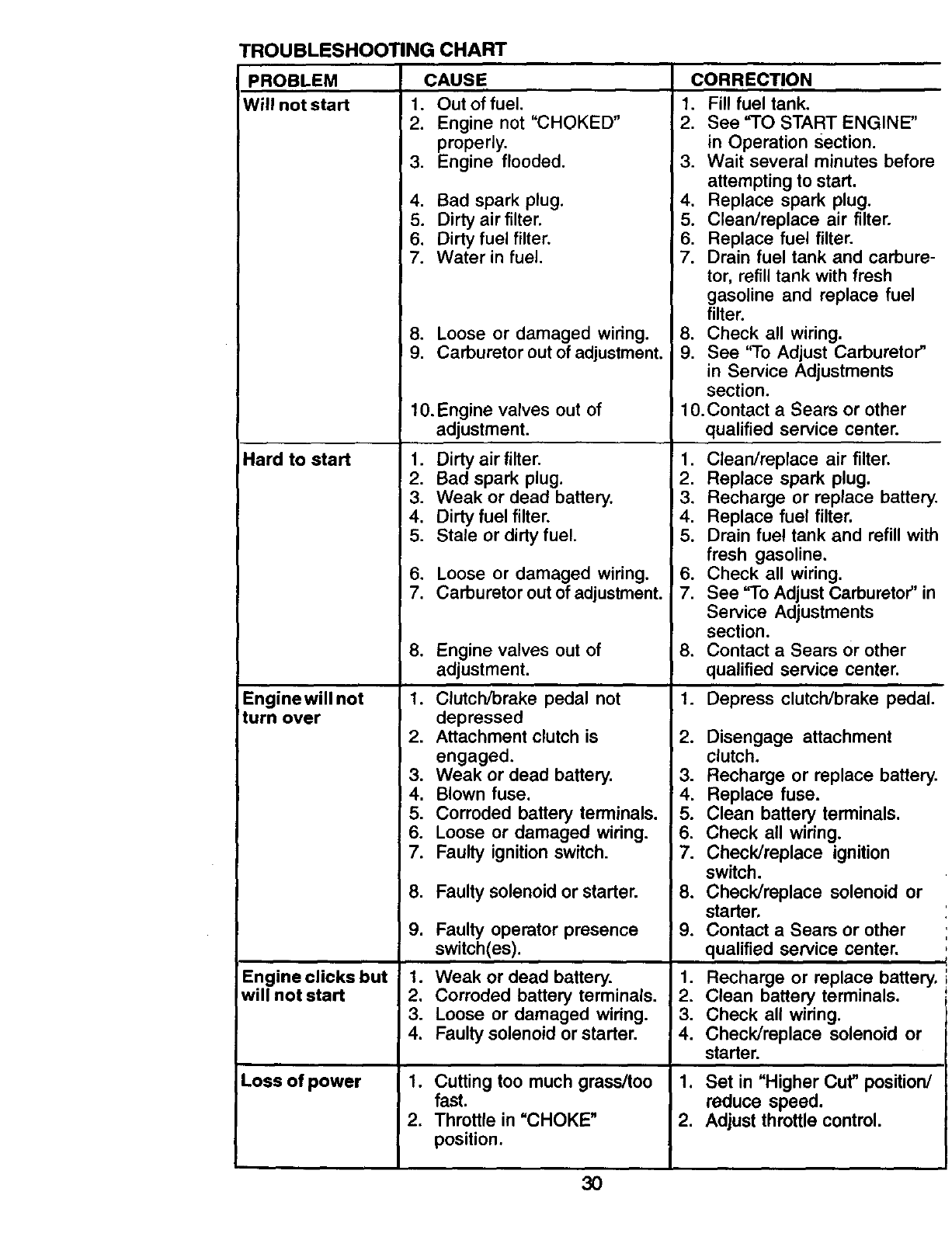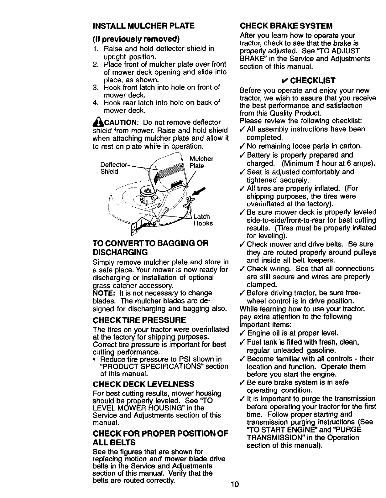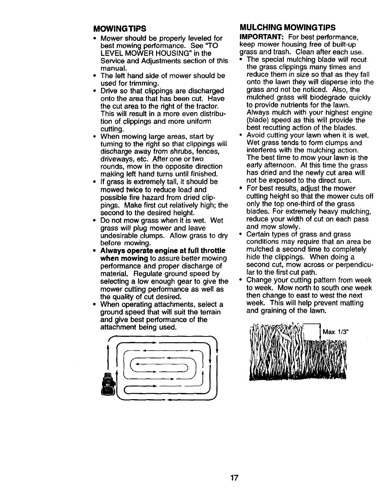 proper grade and amount of engine oil, failure to keep the deck clear of flammable