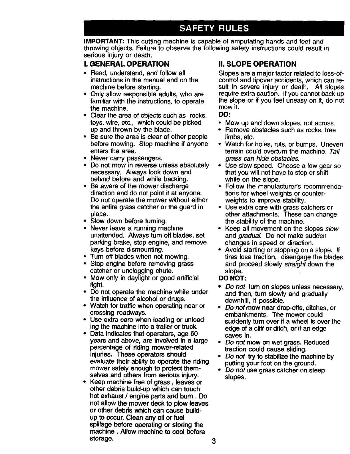 I. GENERAL OPERATION II, SLOPE OPERATION