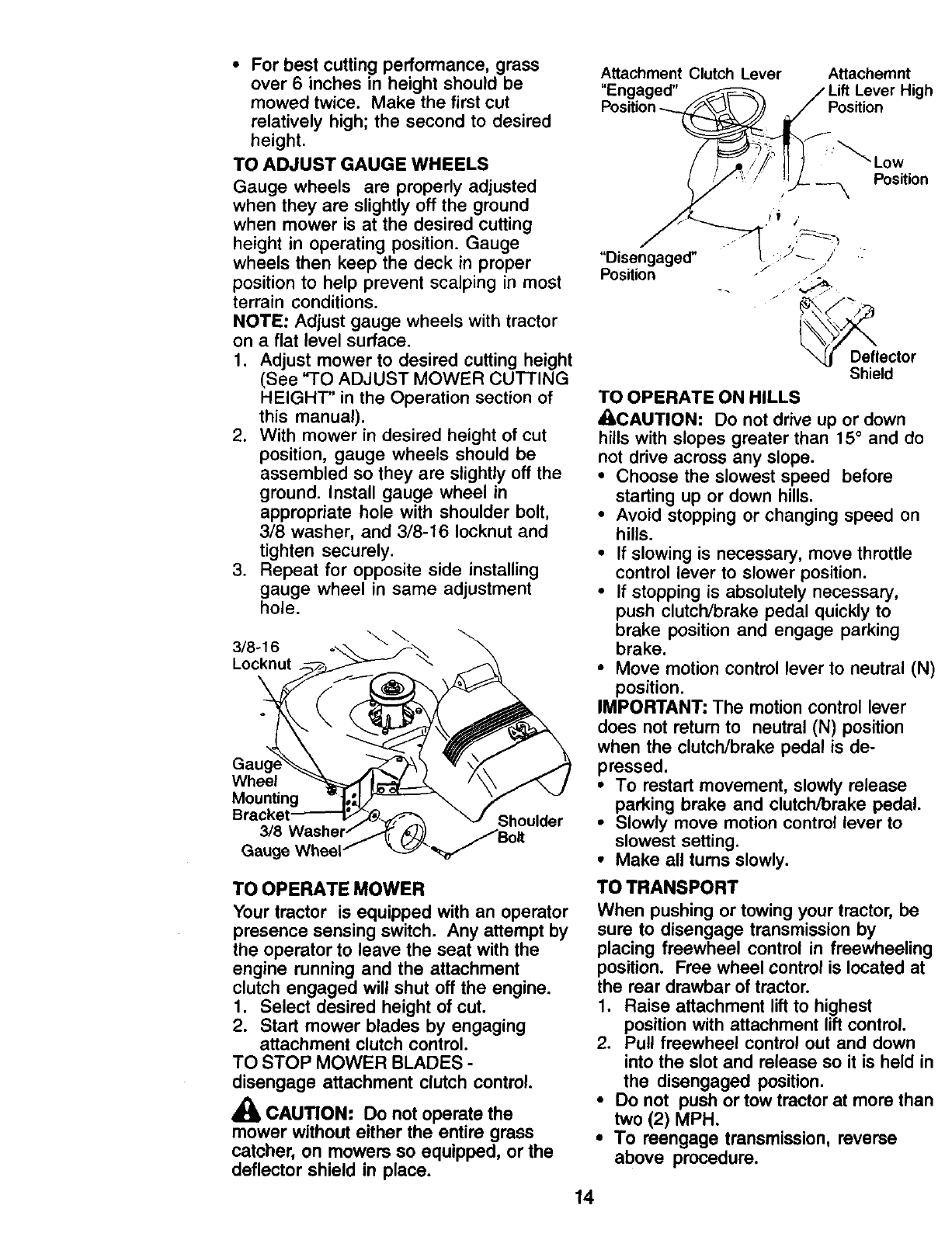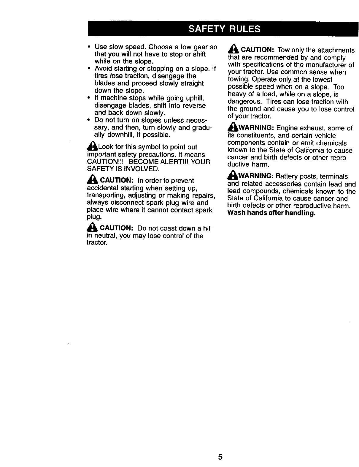 /_ Operate your Tractor up and down the face of slopes (not I