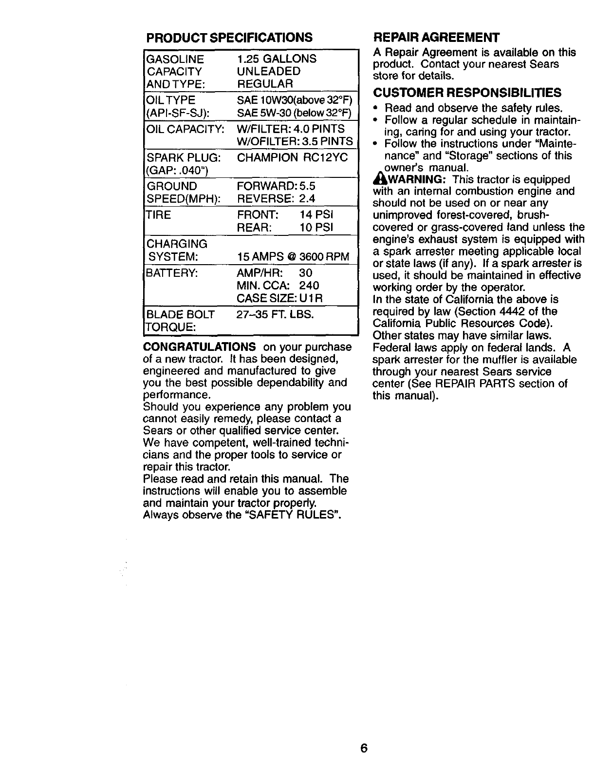 service is available free of charge by returning your Craftsman riding equipment to