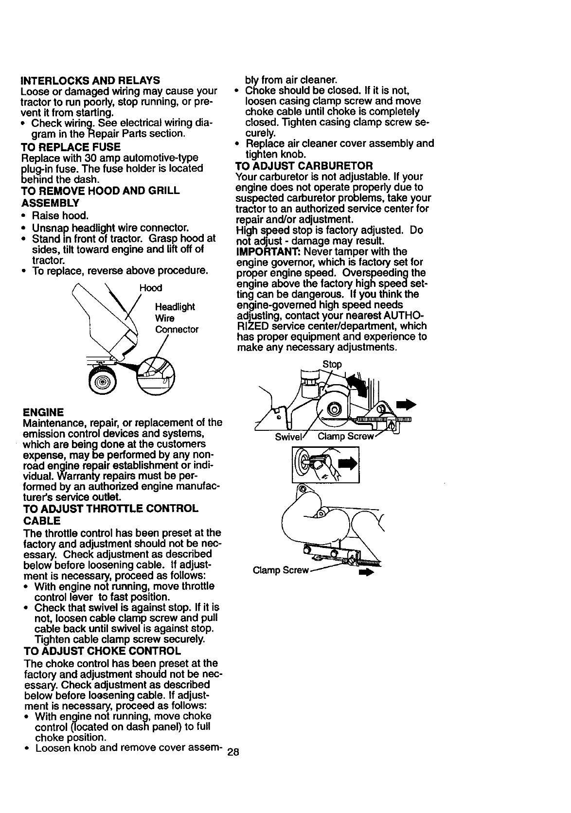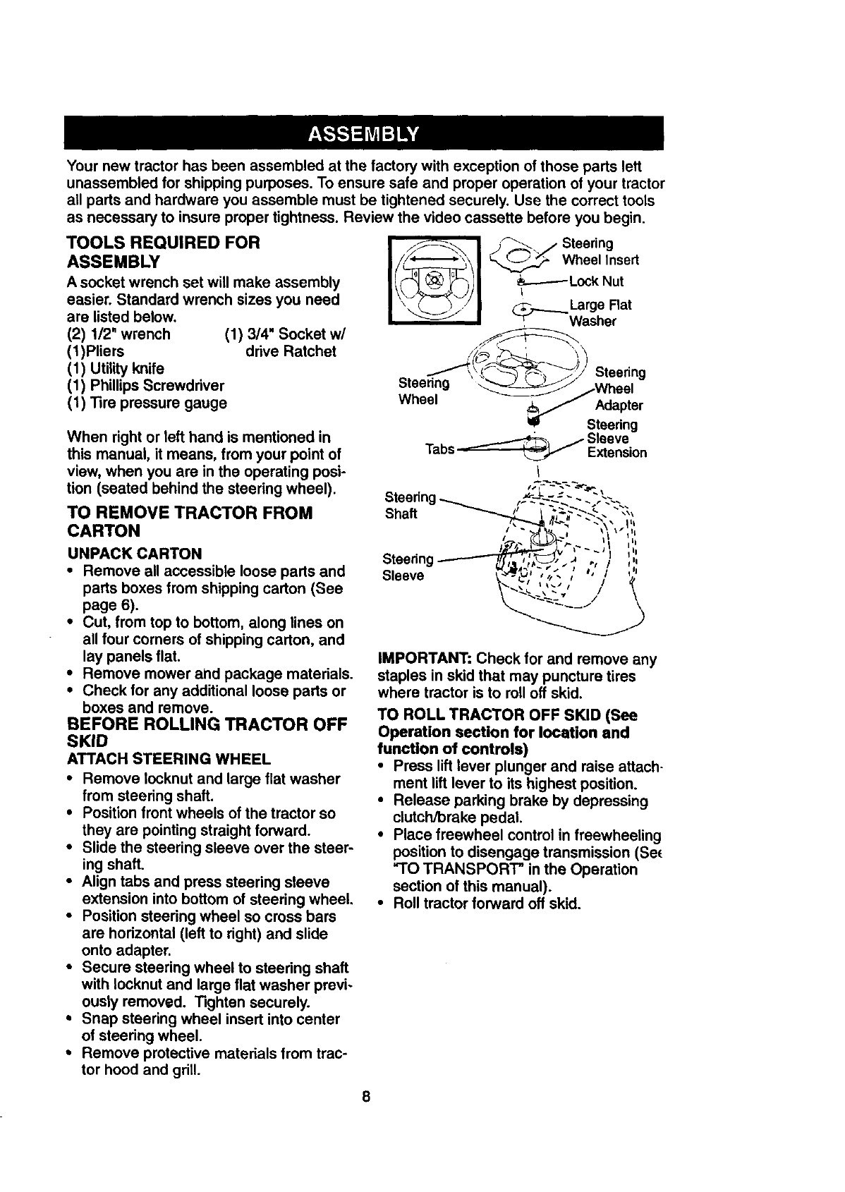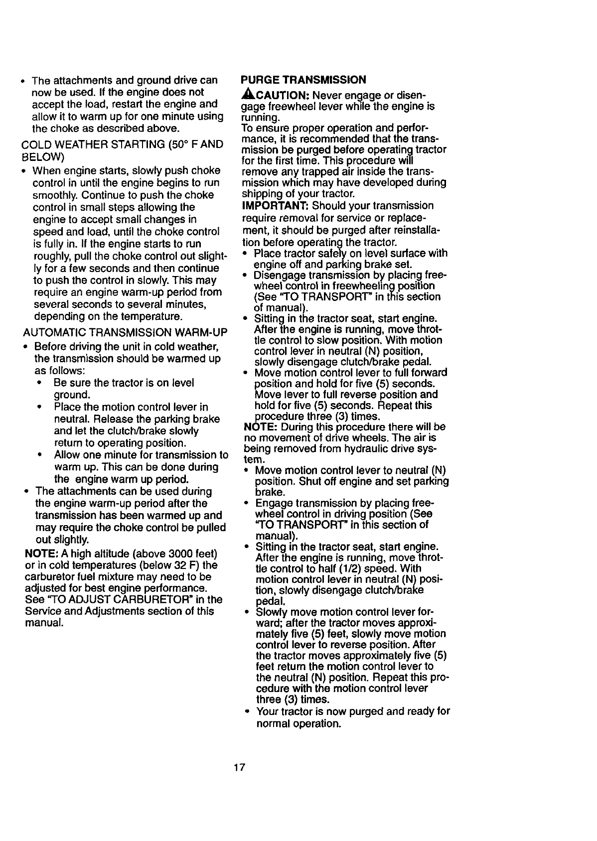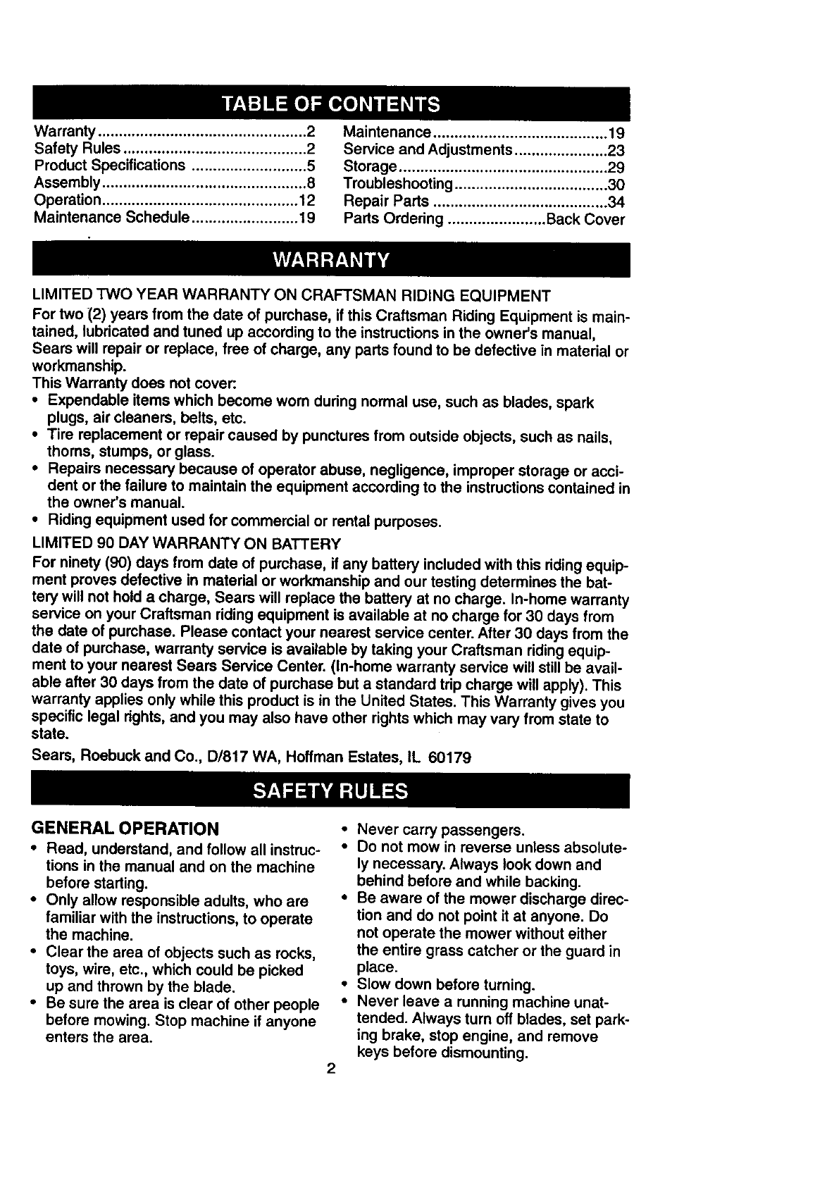 date of purchase, warranty service is available by taking your Craftsman riding equip-