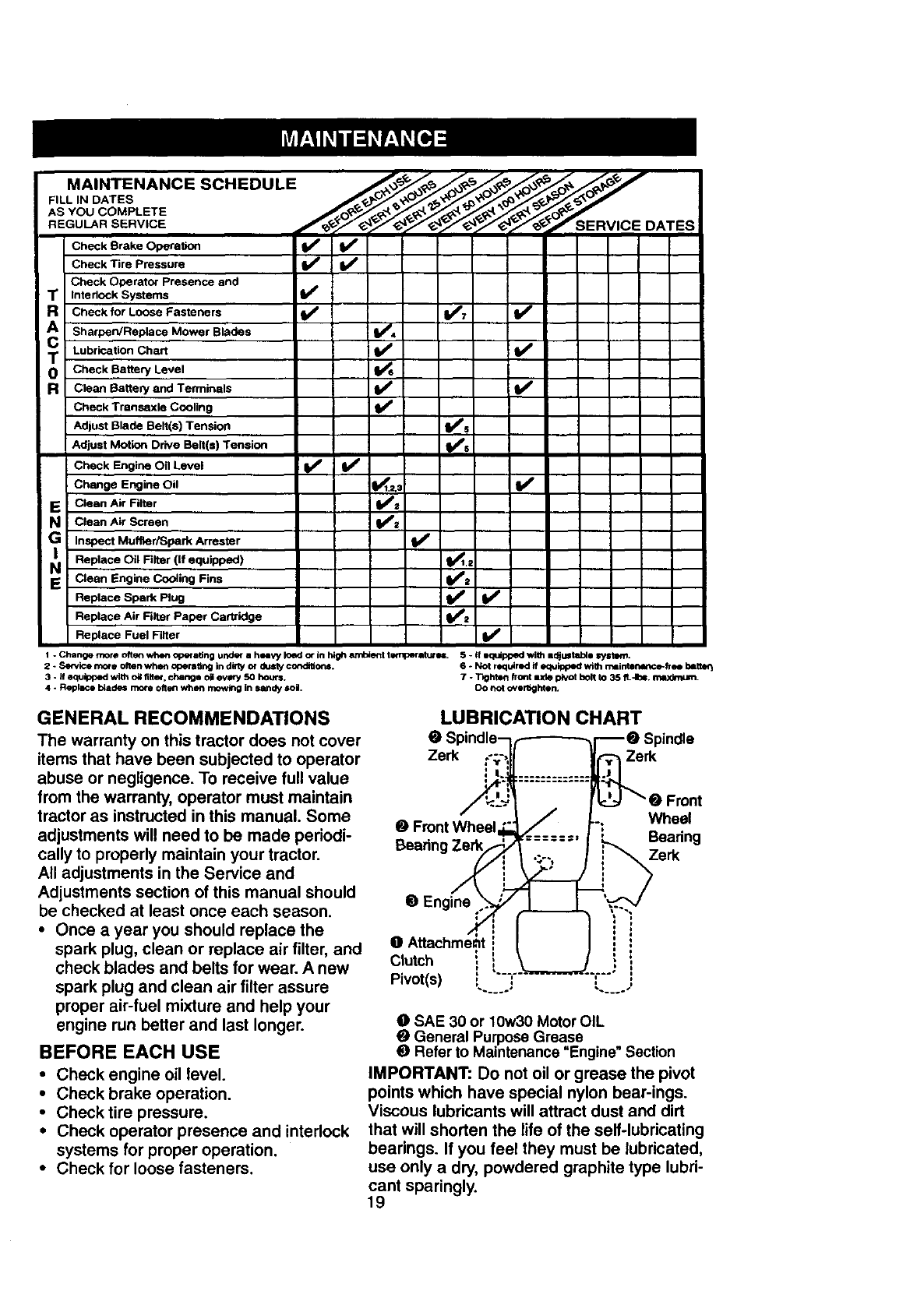 tained, lubricated and tuned up according to the instructions in the owner's manual,