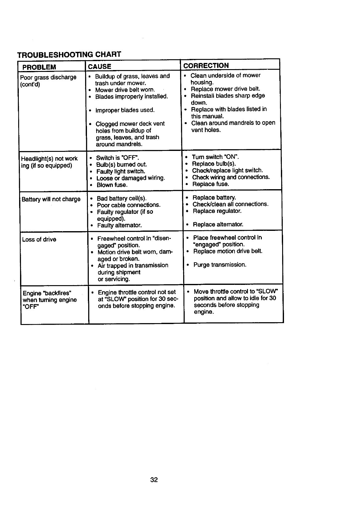•Repairs necessary because of operator abuse, negligence, improper storage or acci-