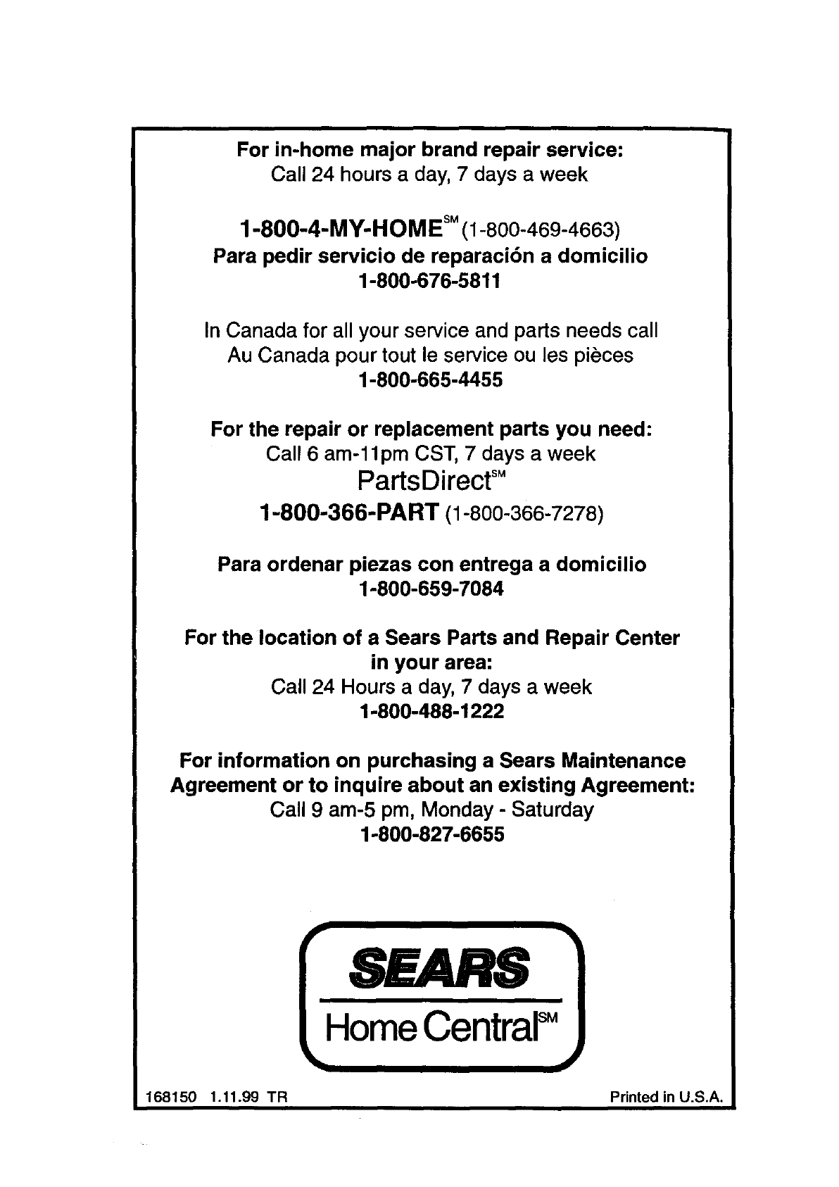 ment to your nearest Sears Service Center. (In-home warranty service will still be avail-