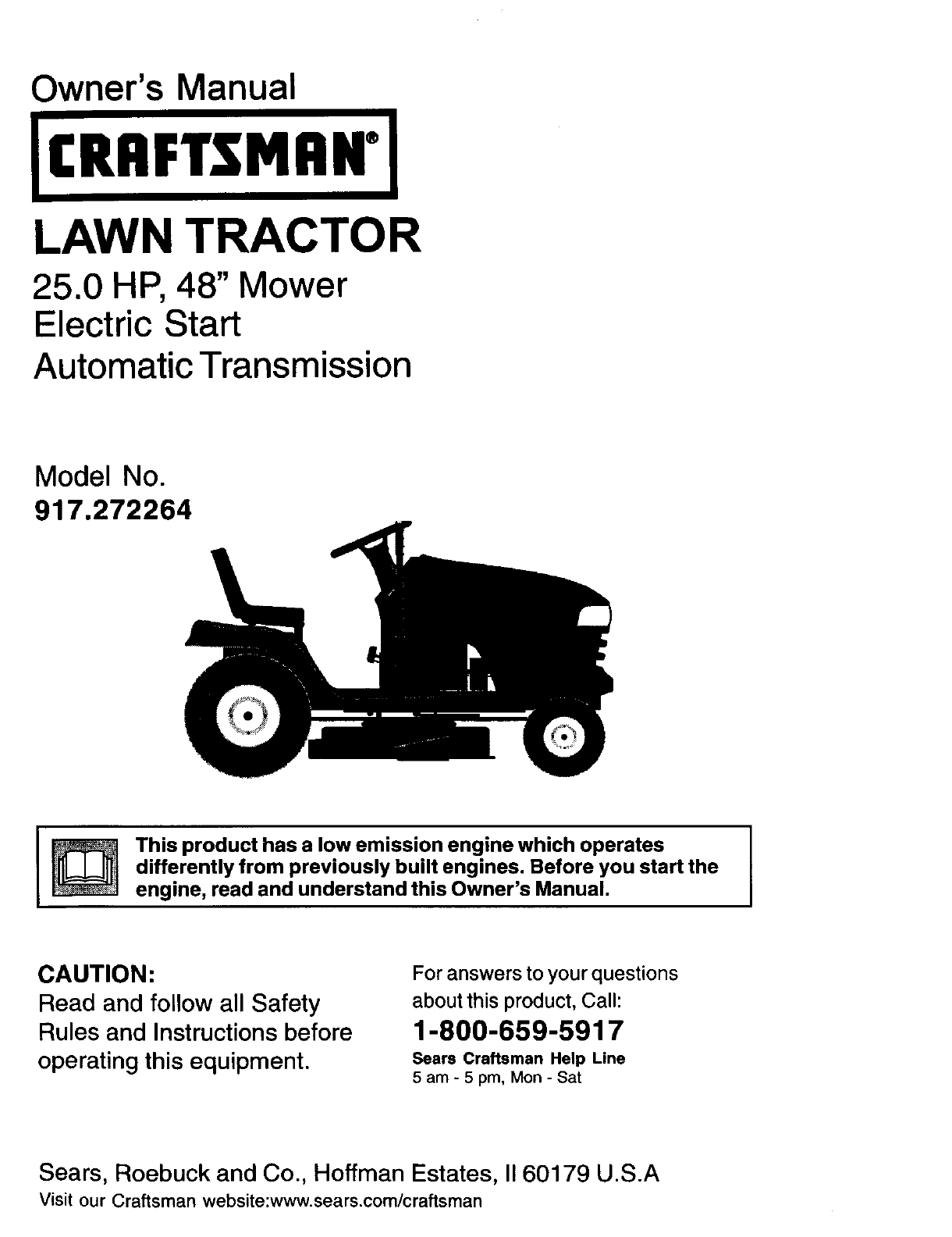 User Manual: Craftsman 917272264 917272264 CRAFTSMAN LAWN TRACTOR - Manuals and Guides View the owners manual for your CRAFTSMAN LAWN TRACTOR #917272264. Home:Lawn & Garden Parts:Craftsman Parts:Craftsman LAWN TRACTOR Manual