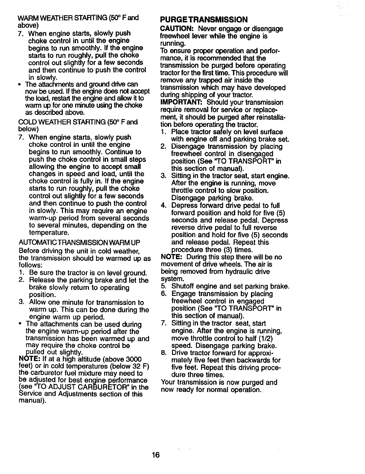 maintained, lubricated and tuned up according to the instructions in the owner's