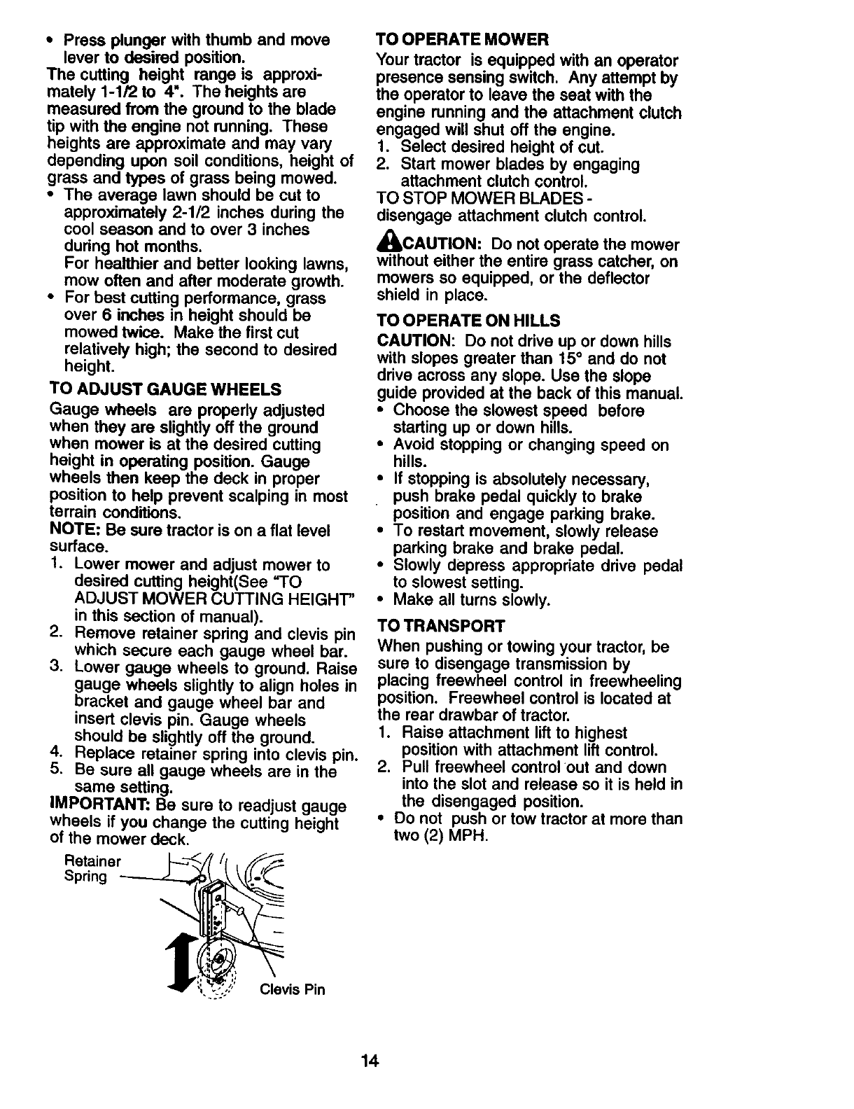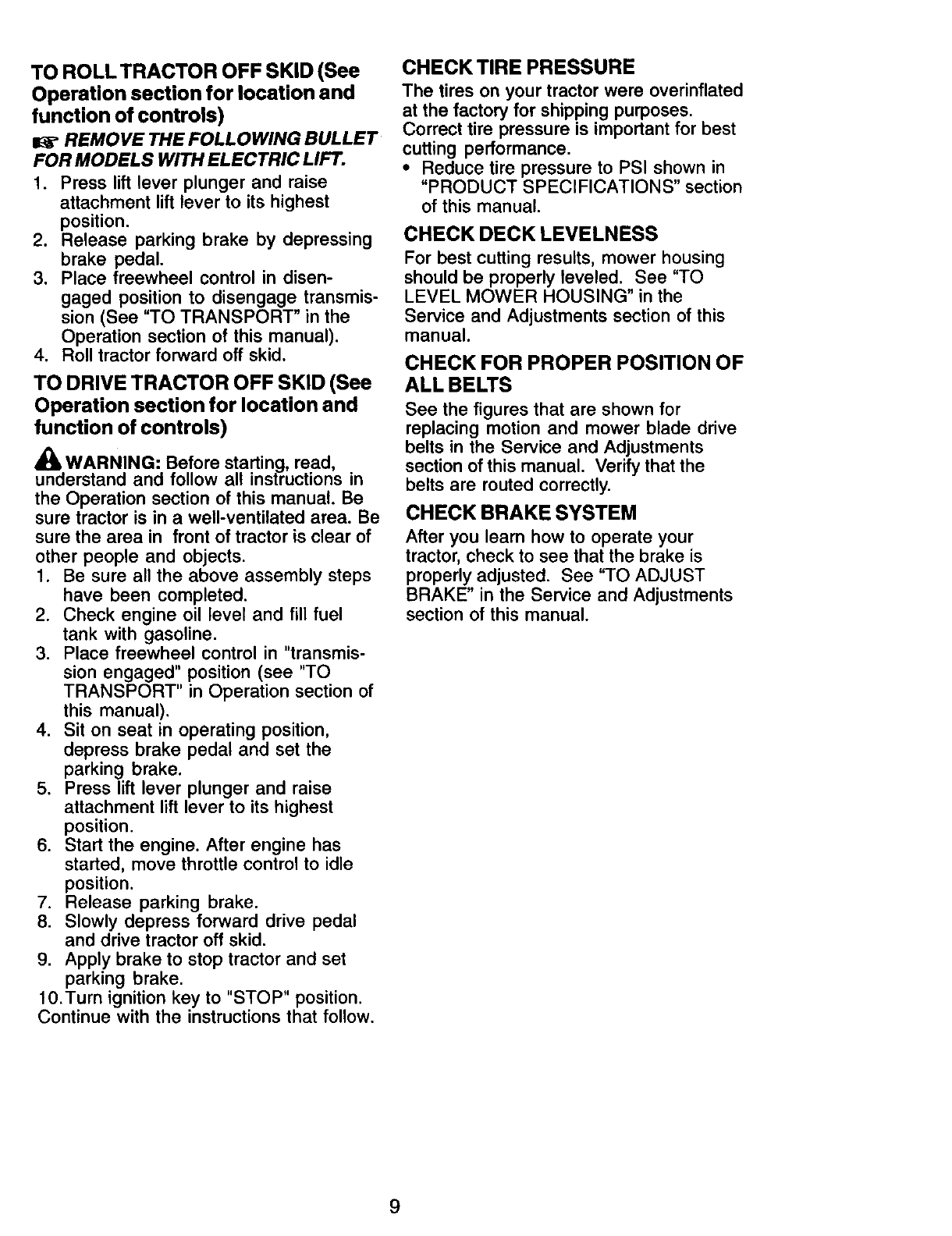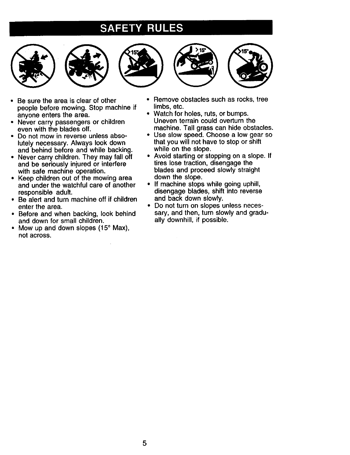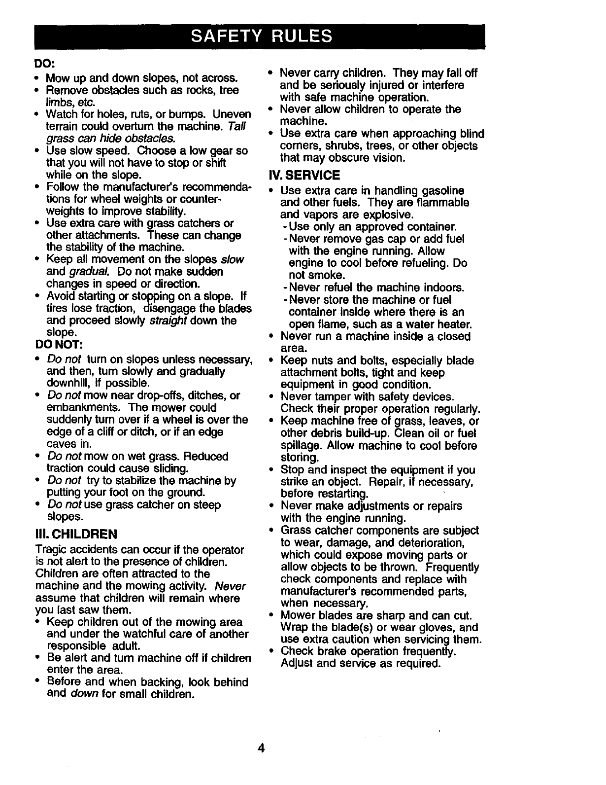 proper grade and amount of engine oil, failure to keep the deck clear of flammable