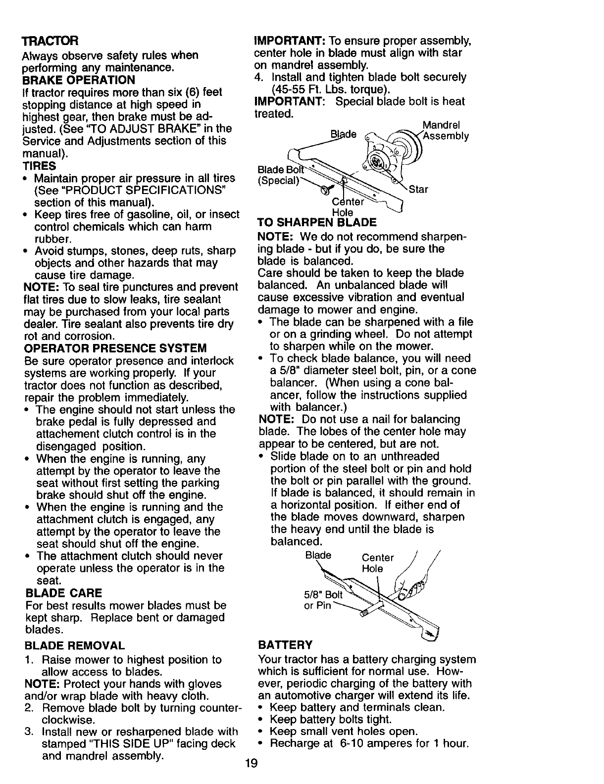 battery will not hold a charge, Sears will replace the battery at no charge. During the