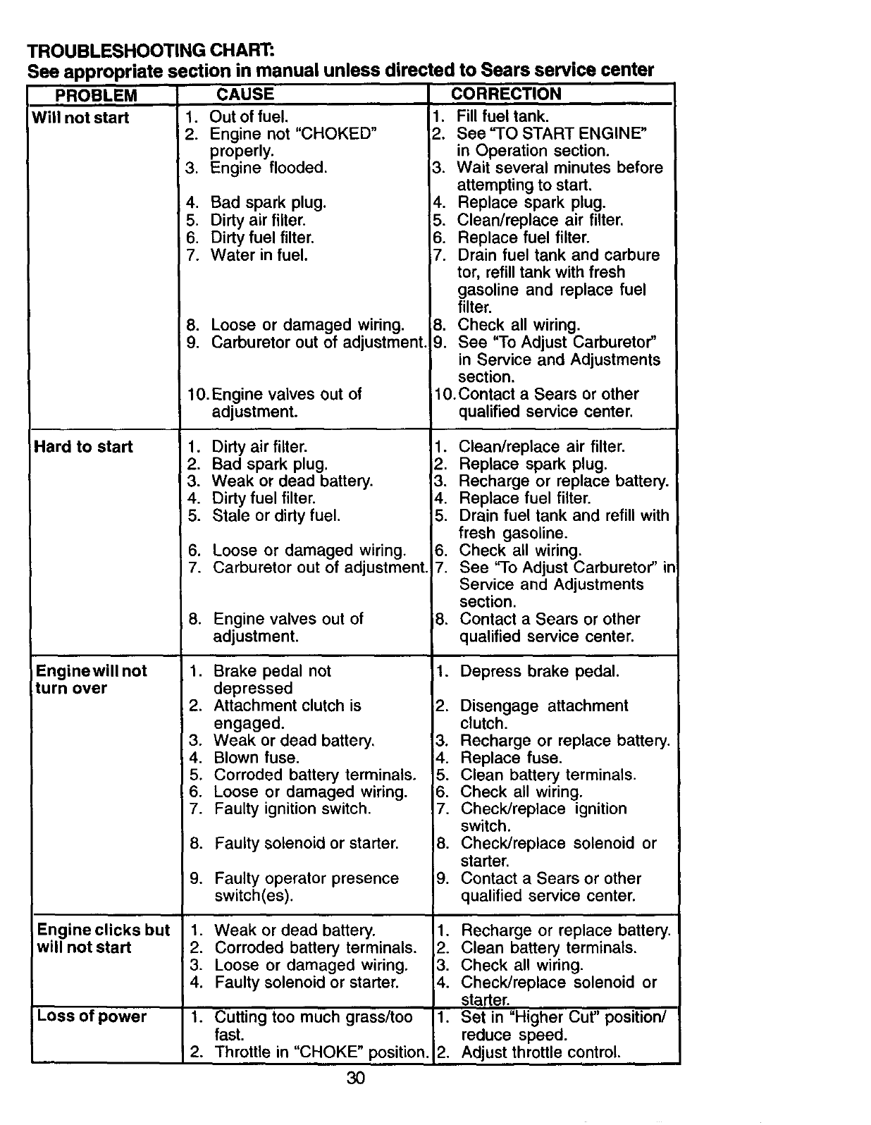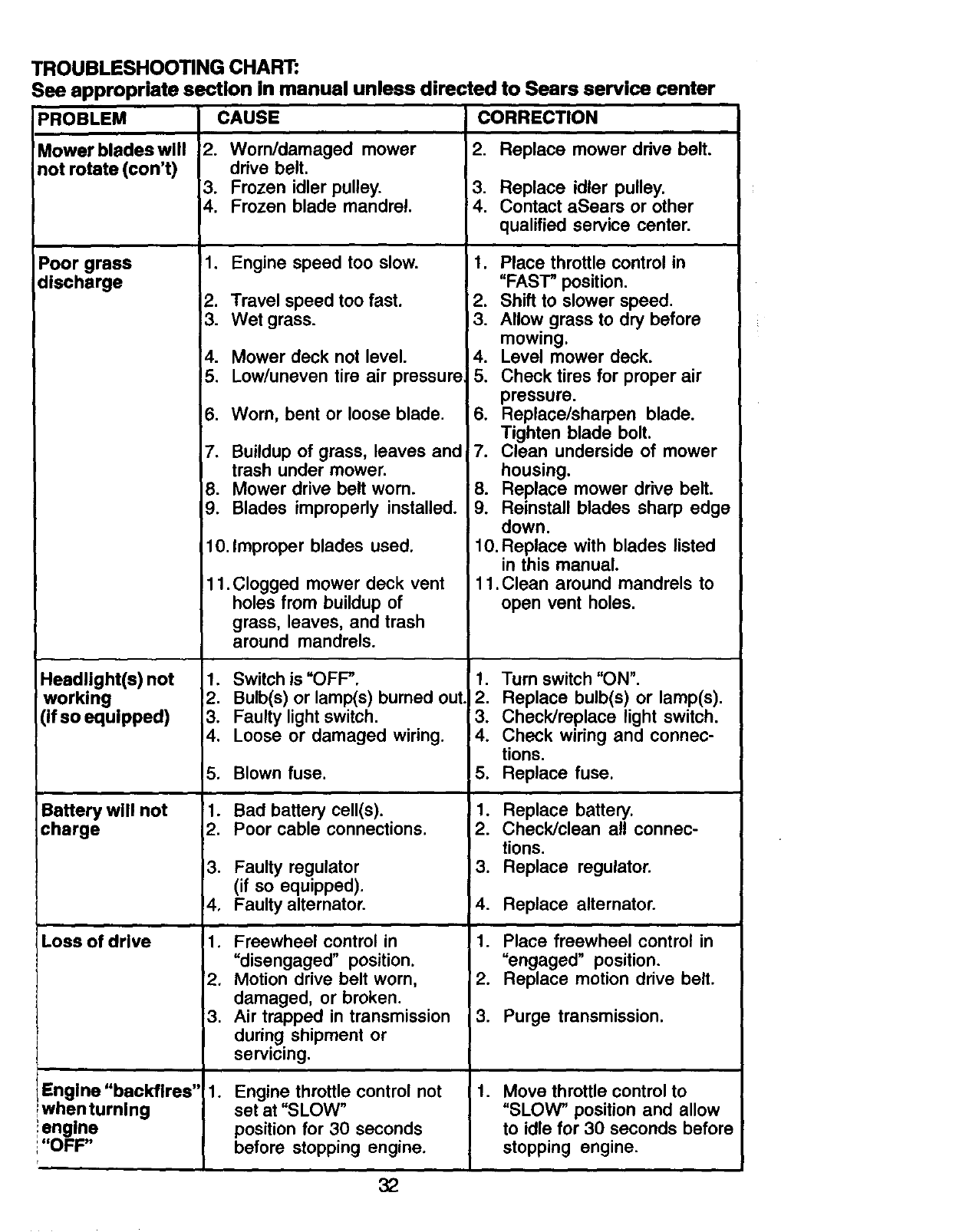Sears Service ...................... Back Cover