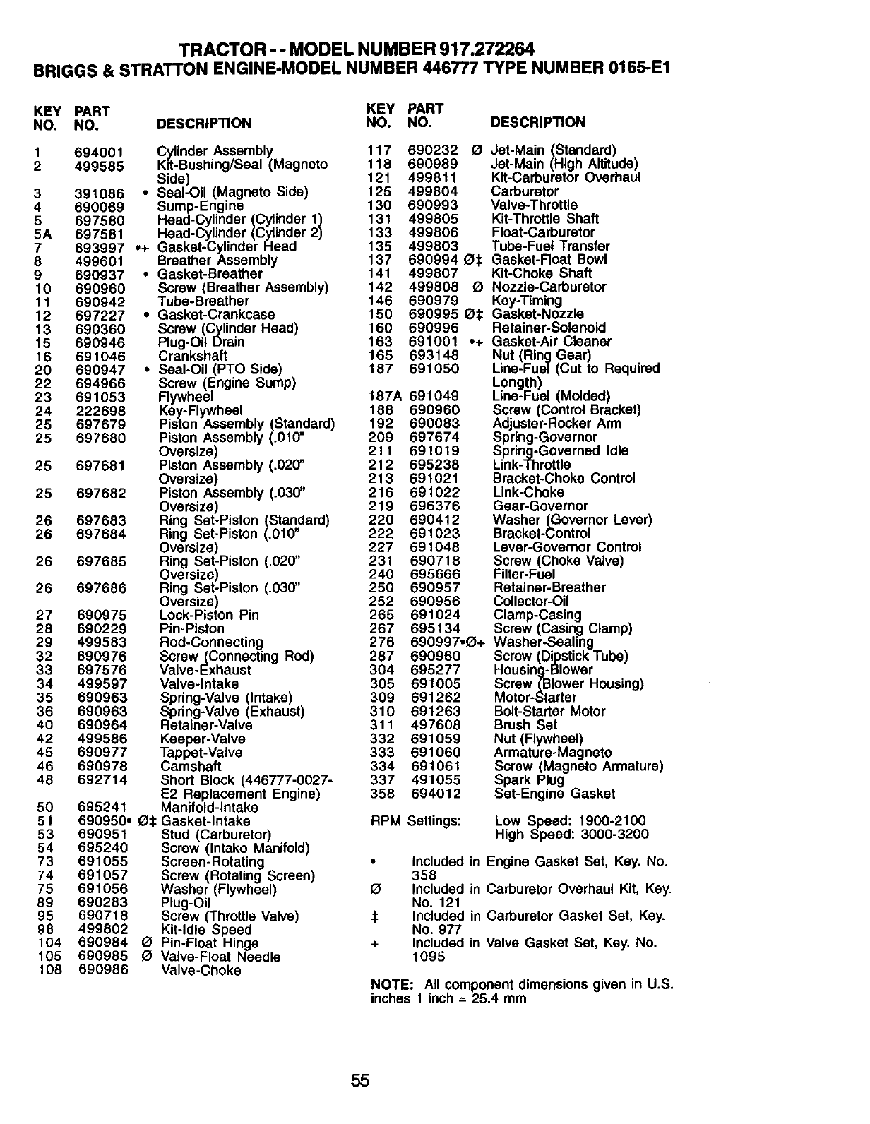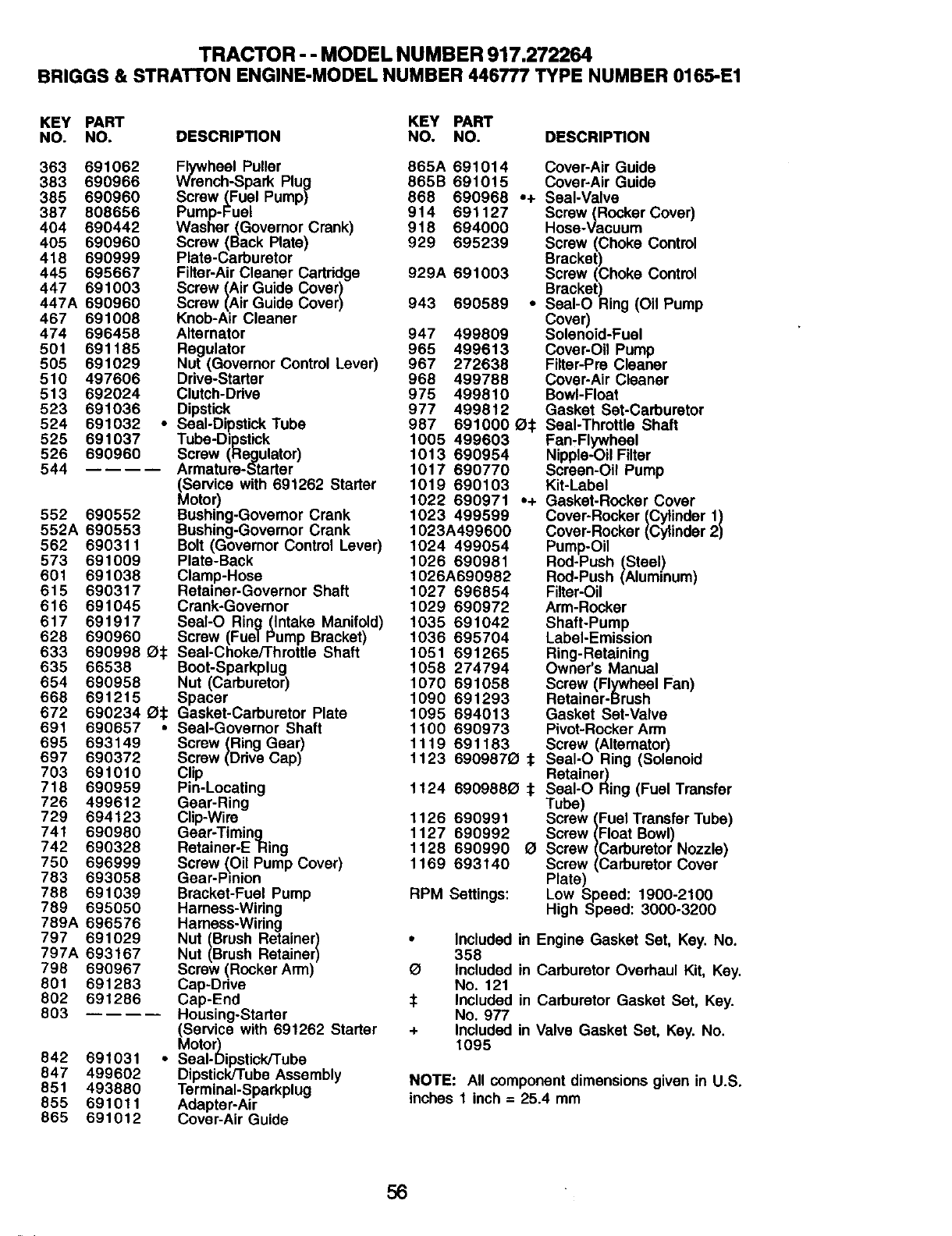 788 691039 Bracket-Fuet Pump RPM Settings: Low Speed: 1900-2100