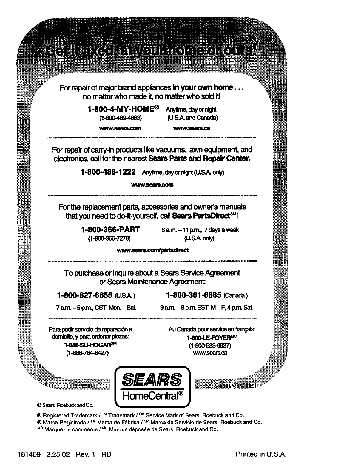 181459 2.25.02 Rev. 1RD Printed in U.S.A.