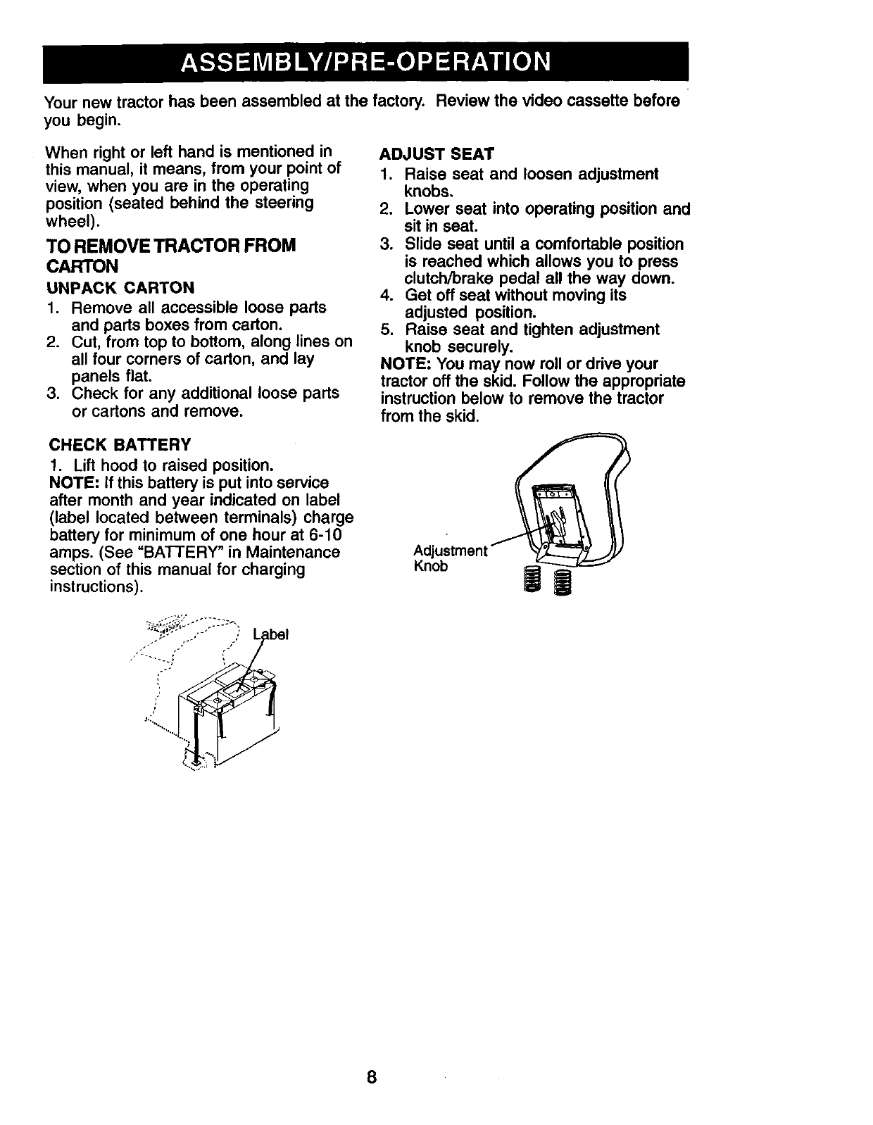 AssemblyPre-Operation ....................... 8