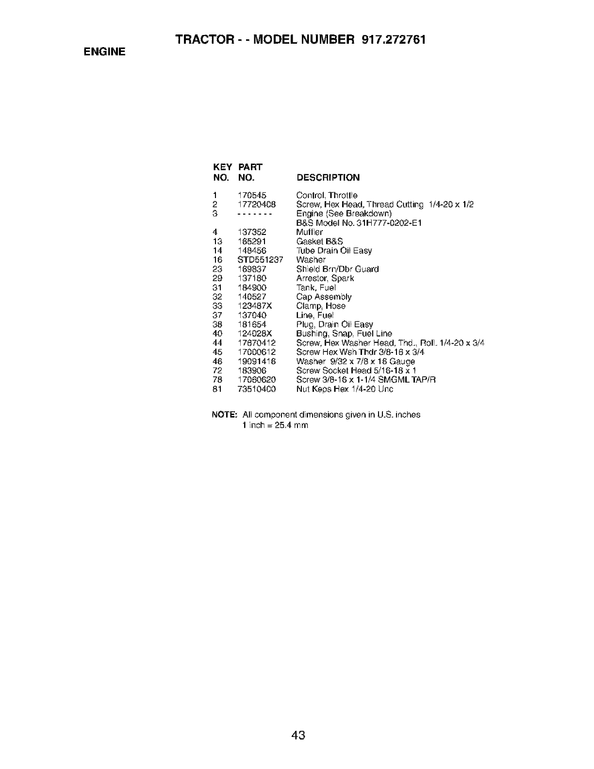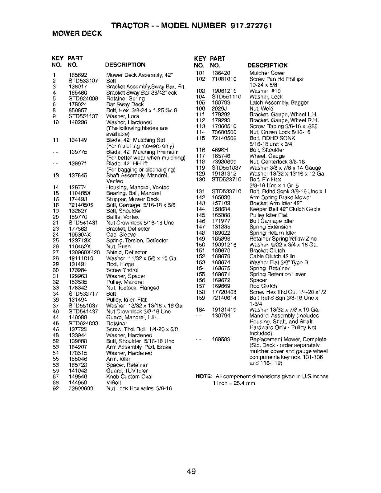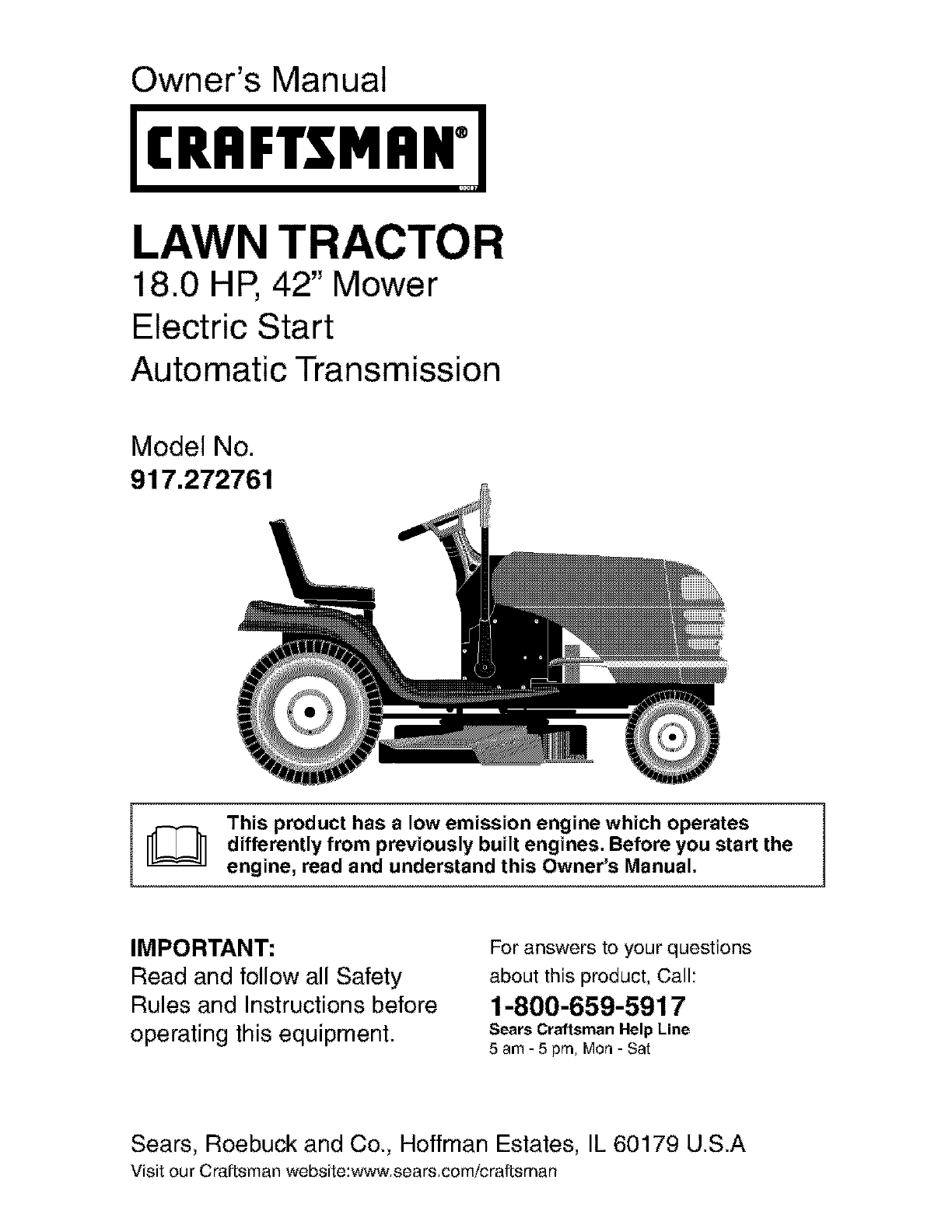 User Manual: Craftsman 917272761 917272761 CRAFTSMAN LAWN TRACTOR - Manuals and Guides View the owners manual for your CRAFTSMAN LAWN TRACTOR #917272761. Home:Lawn & Garden Parts:Craftsman Parts:Craftsman LAWN TRACTOR Manual