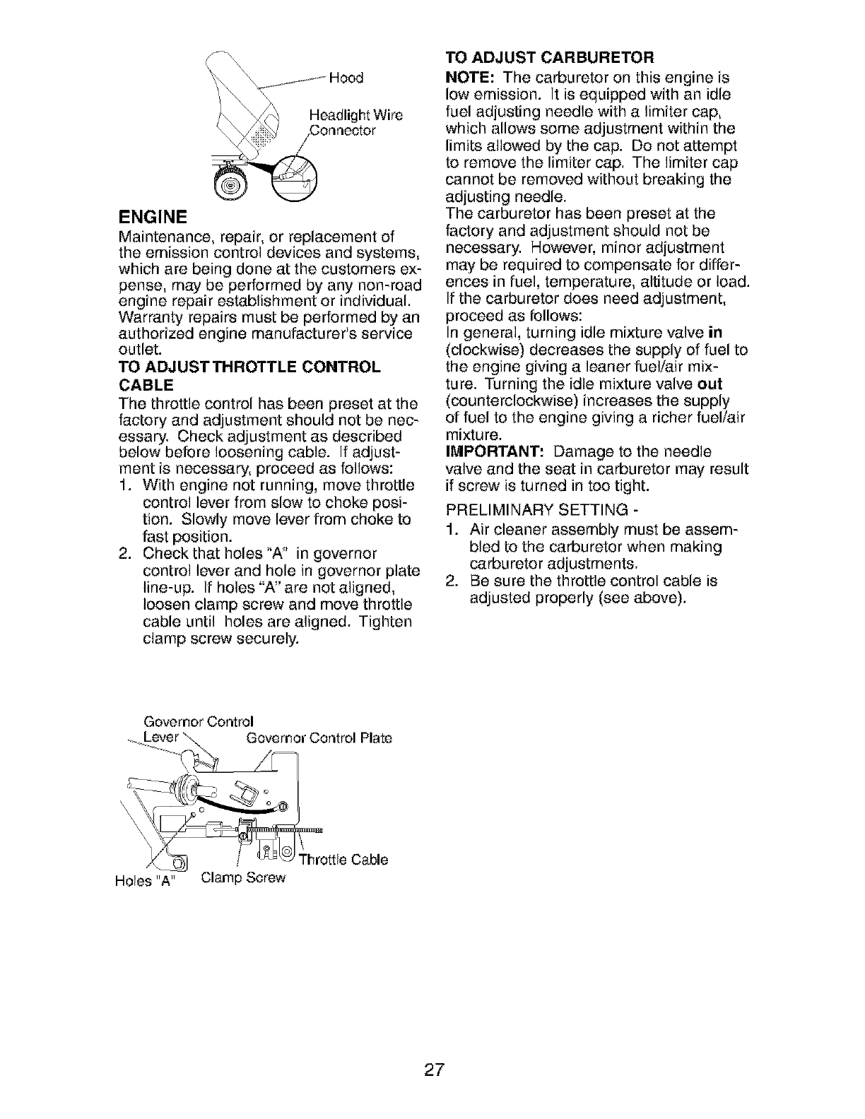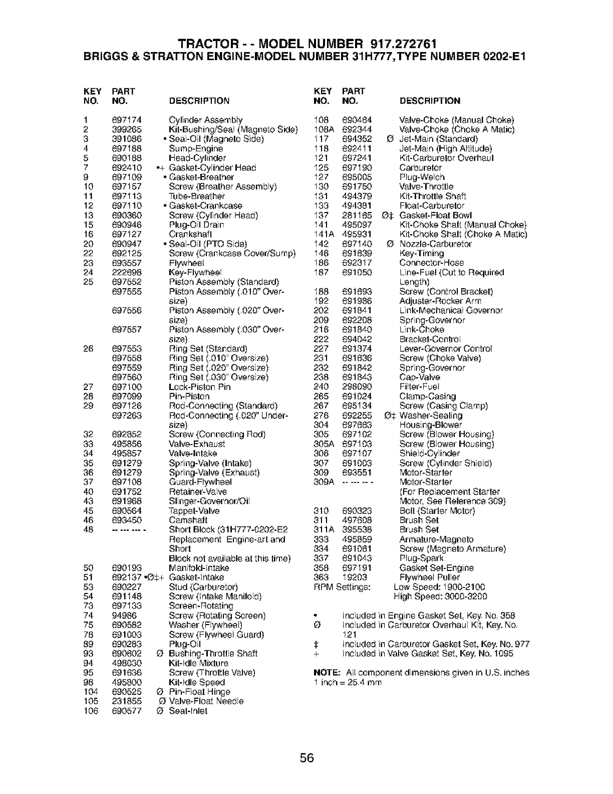 Craftsman 917272761 User Manual LAWN TRACTOR Manuals And Guides L0307083