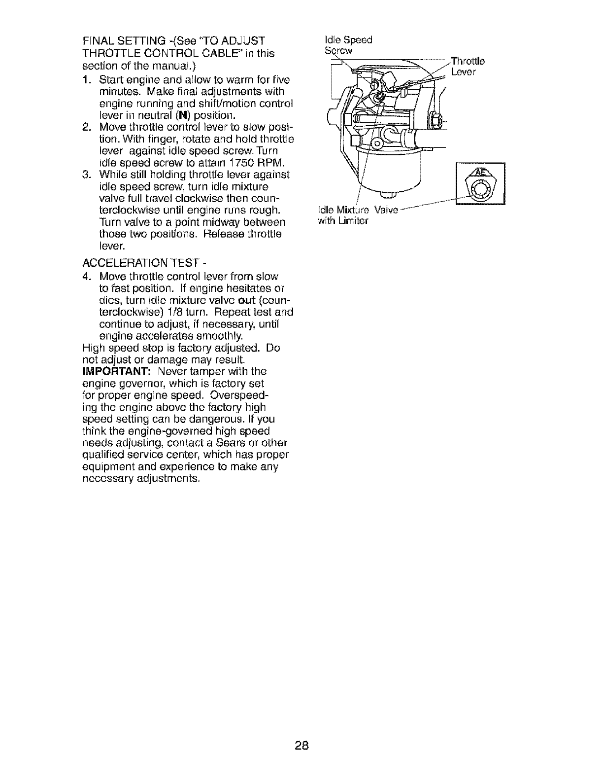 maintained, lubricated and tuned up according to the instructions in the owner's manual,