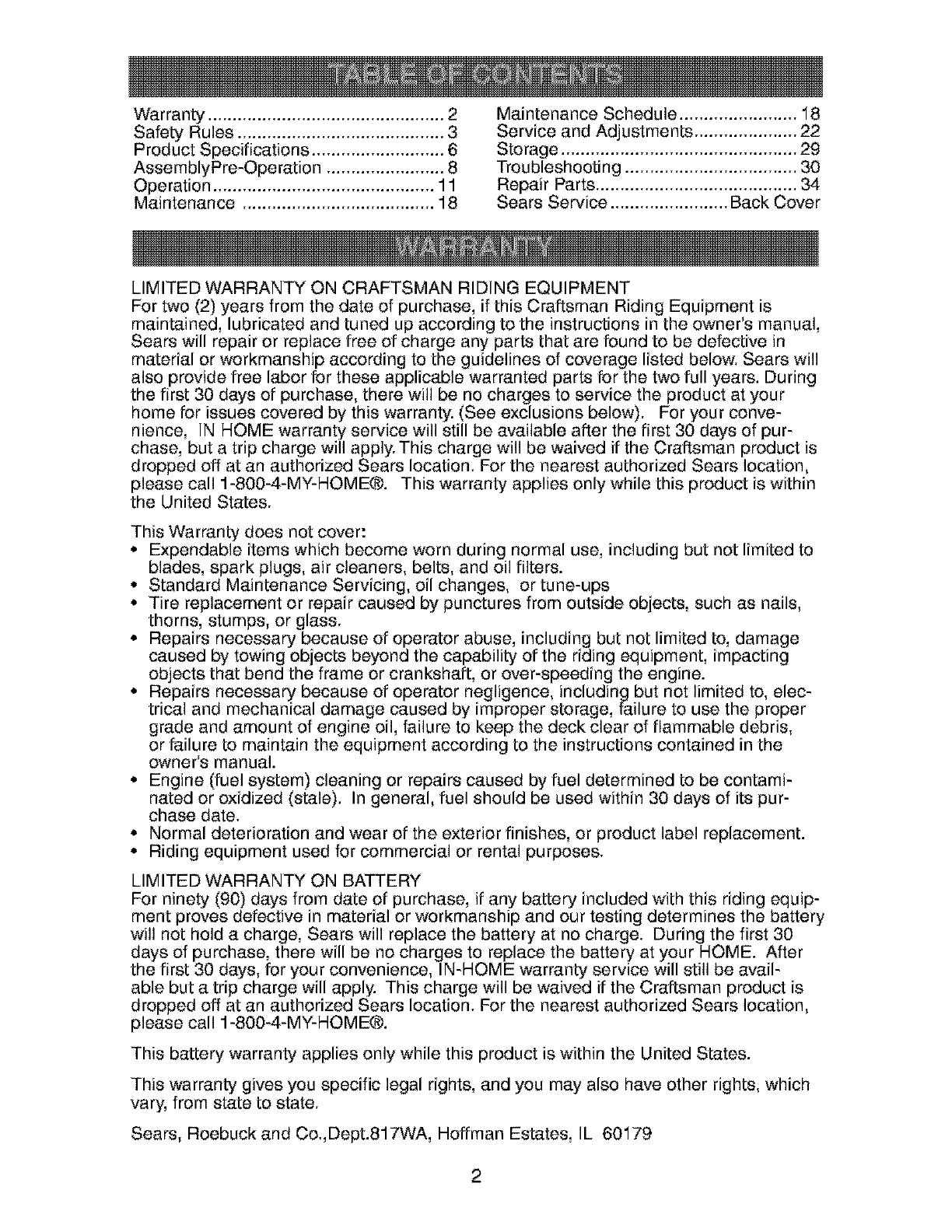 LIMITED WARRANTY ON CRAFTSMAN RIDING EQUIPMENT