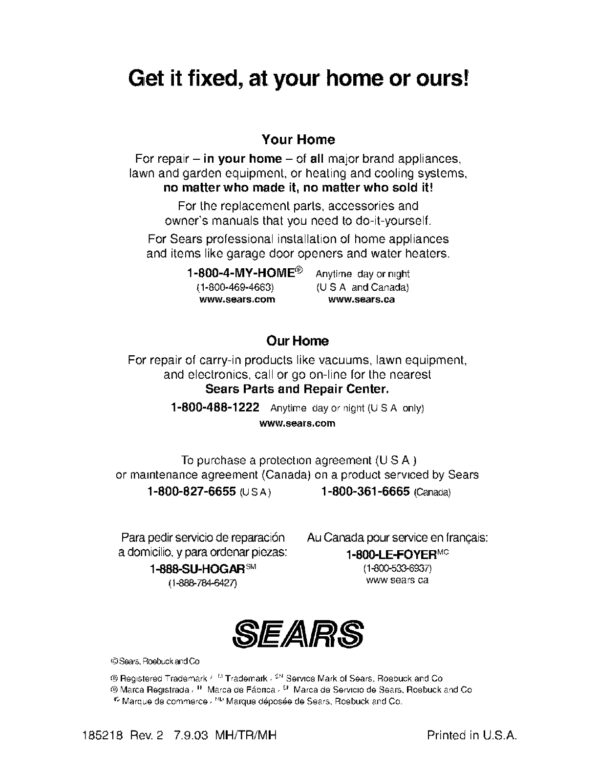 @)Registered Trademark /r._Trademark, s_4Service Mark of Sears, Roebuck ard Co